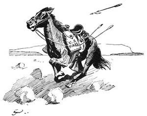 Once in a great while, however, because of the many hostile Indians who laid in wait all along the trails to capture the riders, the pony express had to be stopped for a time.