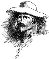 The tints and hues of autumn were at their fullest when a train of wagons issued from the border hills to pursue its way across the rolling surface of the great prairie. Creaking “prairie-schooners,” as the wagons were sometimes called, heavy with stoves and household goods, and concealing the women and children, moved slowly along the trail. Straggling sheep and cattle were herded in the rear, while in front rode or walked the sturdy and fearless backwoodsmen. On every side stretched the broad plain which reached like a great sea to the far distant Rocky Mountains. The leader, a tall, strong man, who rode ahead, had stopped and was looking with shaded eyes toward the west. The setting sun cast a yellow glow over the heavens and earth and seemed to suggest the very gold whose discovery in California was attracting so many men to make this hazardous journey. The dress of this leader was very picturesque. From his deer-skin belt hung his hunting knife, with its buckhorn handle, and his hat of martens’ fur gave to his strong face a look of great determination. The stock of his rifle, that was loosely hung over his shoulder, was of beautiful mahogany riveted and bound with precious metal. In addition to the rifle, a carefully guarded powder horn and a keen, bright wood axe were slung across his back.