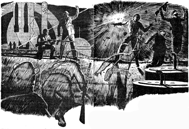 Then a movement jerked Manning's gaze back to the prisoners—and he almost shot the Herr Doktor. For Kahl had contrived to halt near the apparatus-laden table, had taken one quick step and thrown a switch.