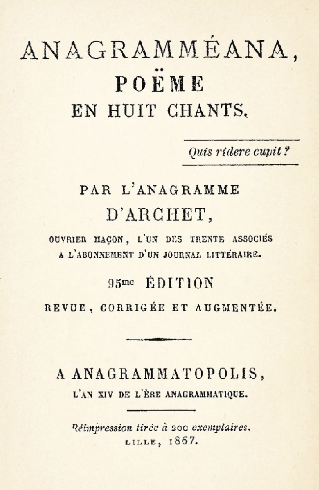 *** START OF THE PROJECT GUTENBERG EBOOK ANAGRAMMÉANA, POËME EN HUIT CHANTS ***
