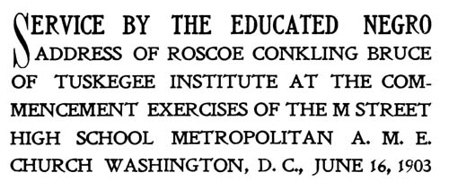 | Address of Roscoe Conkling Bruce of Tuskegee Institute at the Commencement Exercises of the M Street High School Metropolitan A. M. E. Church Washington, D.C., June 16, 1903 |