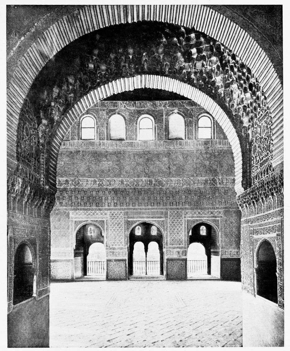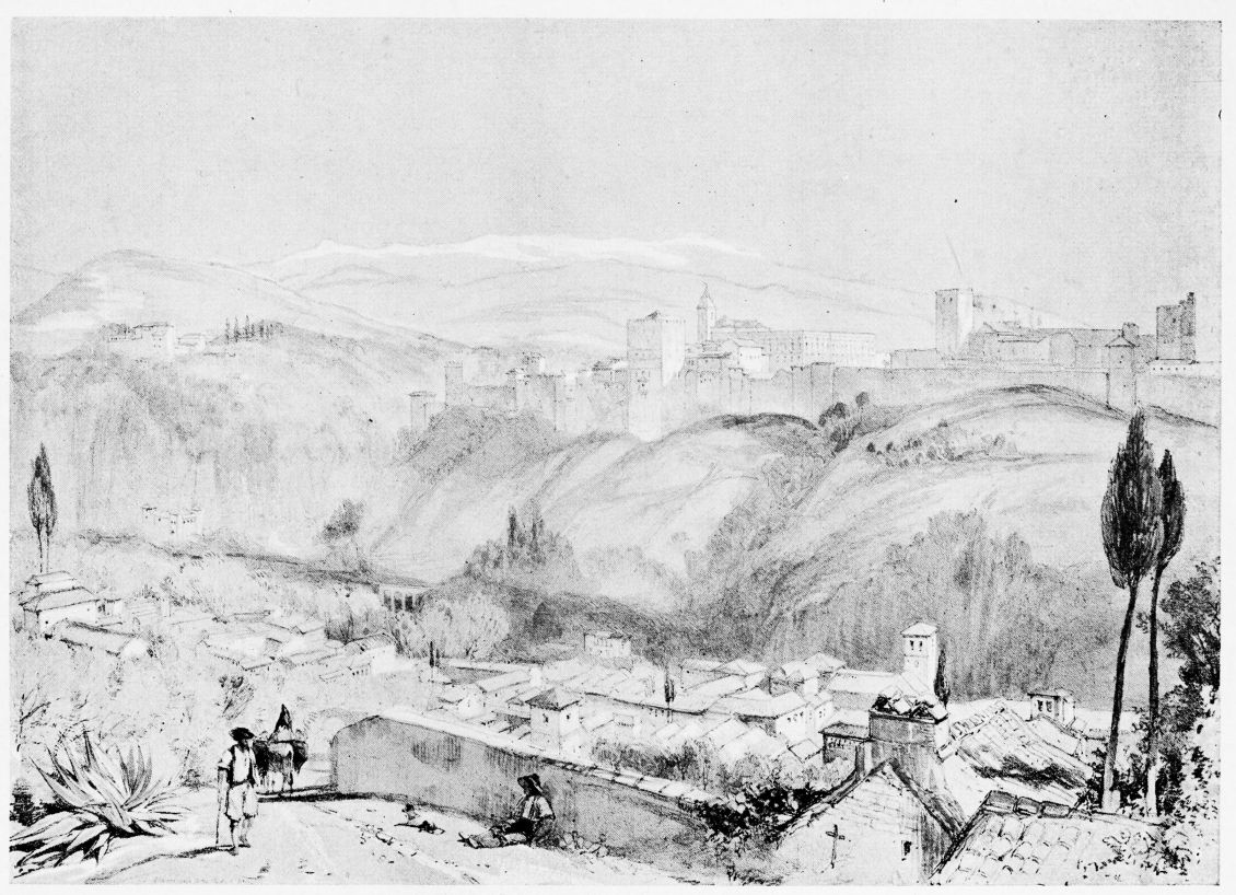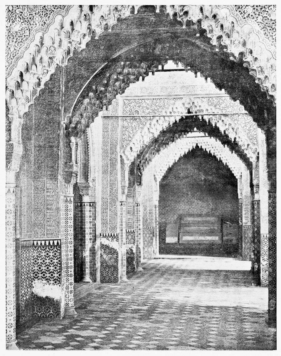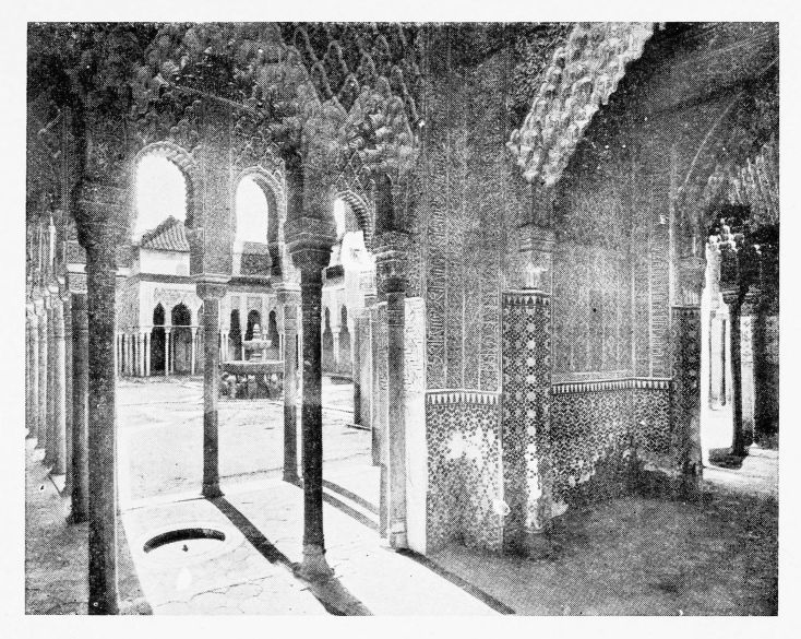 For the historical portions of the description contained in the letterpress I have levied tribute on a variety of authors. The History of the Mohammedan Dynasties in Spain, by the learned Spanish Orientalist, Don Pascual de Gayángos; Raphaël Contreras’ Etude Descriptive des Monuments Arabes; Richard Ford’s reverent appreciations; Dr. R. Dozy’s history; Mr. Stanley Lane-Poole’s The Moors in Spain; Washington Irving’s fascinating writings; and The Alhambra Album, presented by Prince Dolgorouki in 1829, containing the autographs, poems and thoughts of succeeding generations of visitors to Granada, these and many others have been drawn upon in the following pages.