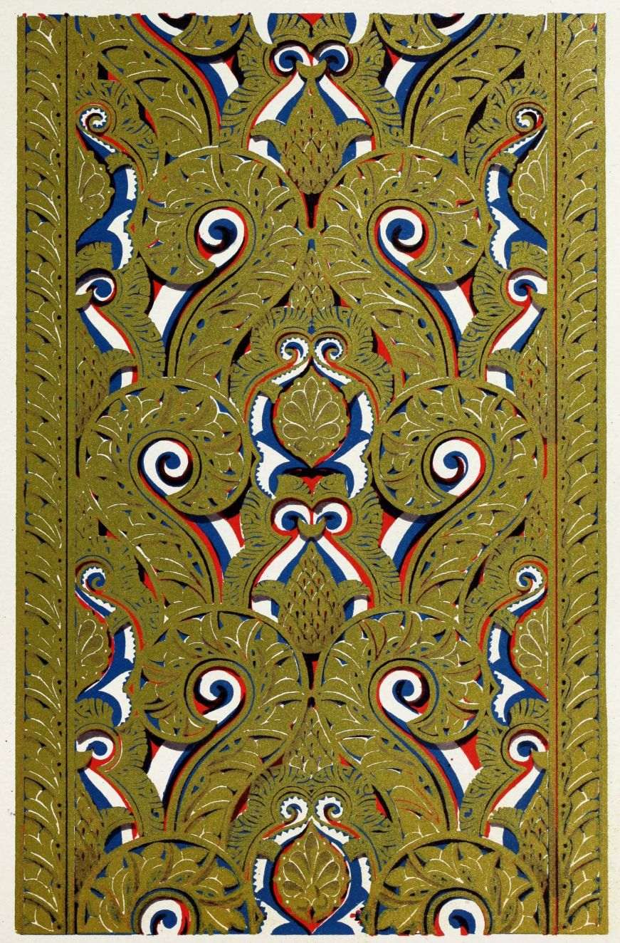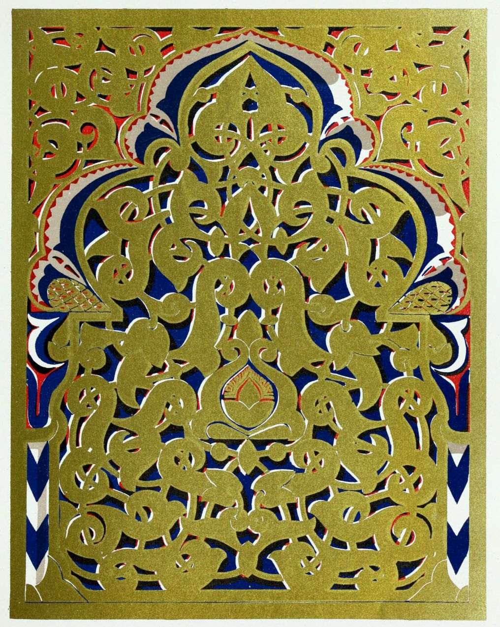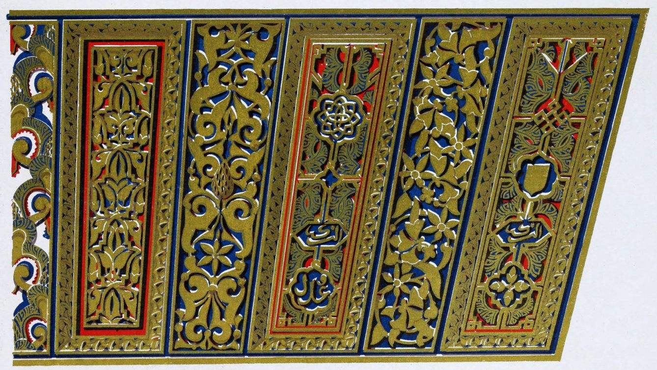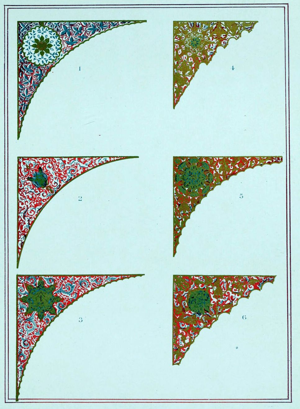 “It is really impossible to do justice, in a journal of this kind, to the sumptuous volume (its price is two guineas and the book is worth it) before us. To do that—to give the reader any adequate notion of the beauty of the illustrations with which it is enriched—we should have to summon all the resources of the colour printer’s art to our assistance, in order to reproduce them in a special edition de luxe of the “P.M.G.” Inasmuch as that is not to be done, we must ask the reader to take it on trust from us that the illustrations of Moorish decorative art are something quite out of the common.... The making of this book must, surely, have been a labour of love; and love’s labour has certainly not been lost.”—Pall Mall Gazette.