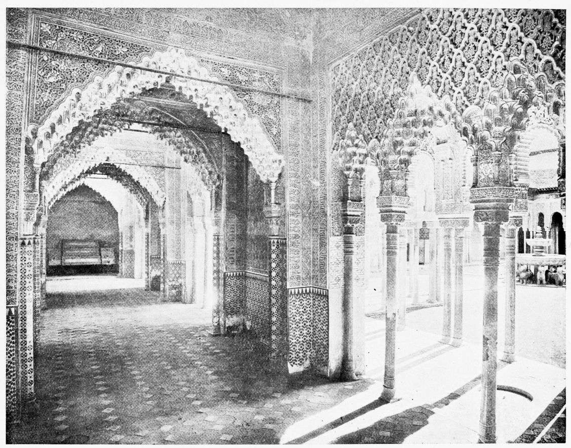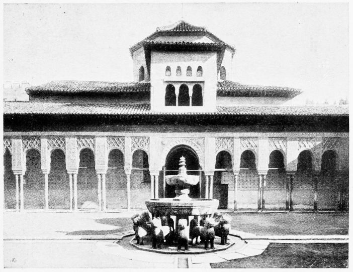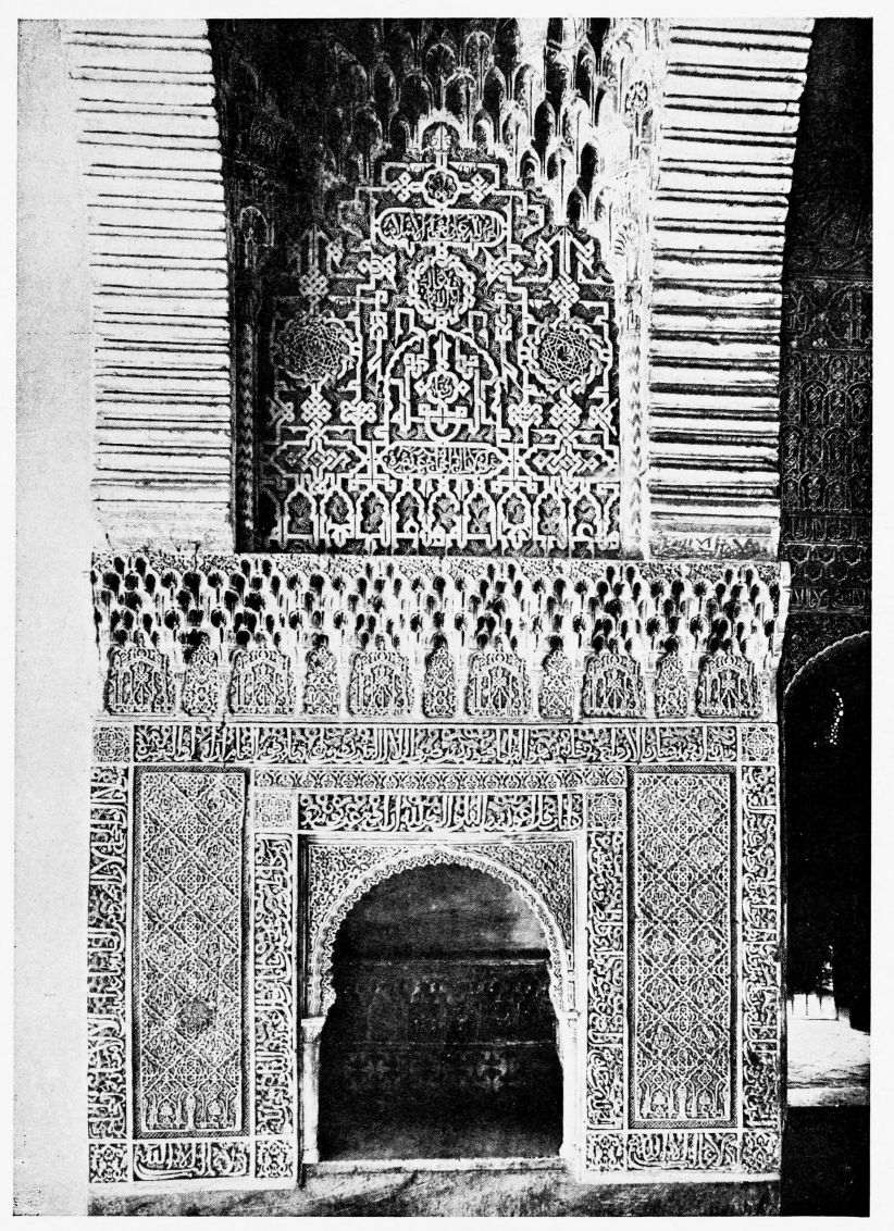 For the historical portions of the description contained in the letterpress I have levied tribute on a variety of authors. The History of the Mohammedan Dynasties in Spain, by the learned Spanish Orientalist, Don Pascual de Gayángos; Raphaël Contreras’ Etude Descriptive des Monuments Arabes; Richard Ford’s reverent appreciations; Dr. R. Dozy’s history; Mr. Stanley Lane-Poole’s The Moors in Spain; Washington Irving’s fascinating writings; and The Alhambra Album, presented by Prince Dolgorouki in 1829, containing the autographs, poems and thoughts of succeeding generations of visitors to Granada, these and many others have been drawn upon in the following pages.