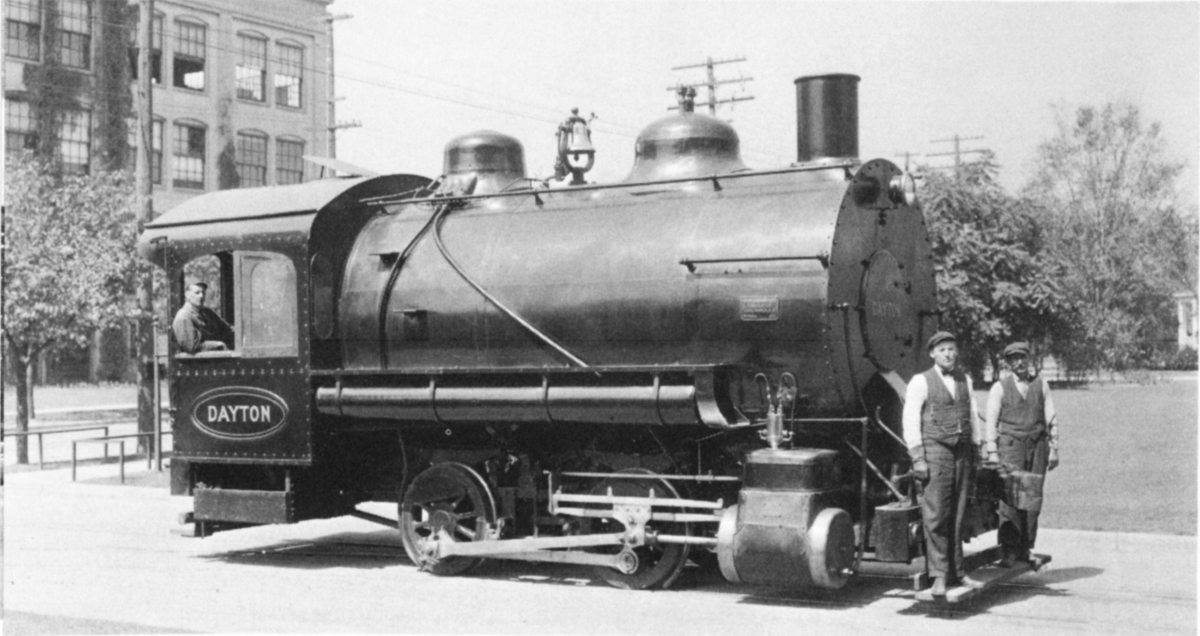 “The Three Little Engines,” so long familiar to Daytonians, were among the first fireless (or steam storage) locomotives in America. The Dayton was built in 1913, the South Park in 1910 and the Rubicon in 1909—all by the Lima Locomotive Works of Lima, Ohio, on a basic design developed and popularized in Germany. NCR’s founder, John H. Patterson, had in fact seen such an engine during his travels in Europe, and decided it was just what he wanted for Dayton, Ohio.