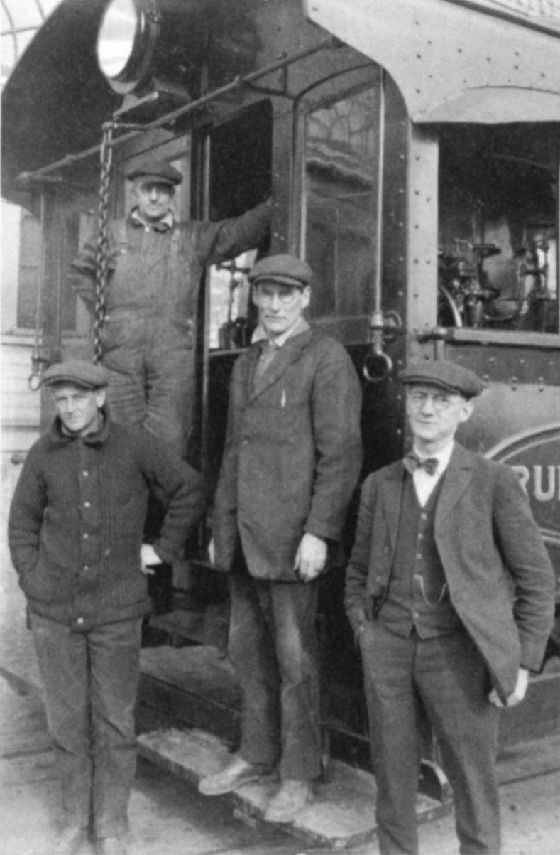 Tanks under the locomotive running boards furnished compressed air for ringing the bell and sanding the rails in icy weather. They were replenished at the roundhouse, for the engine carried no air compressor. Neither was there a generator; the storage battery which operated the headlights had to be recharged regularly.