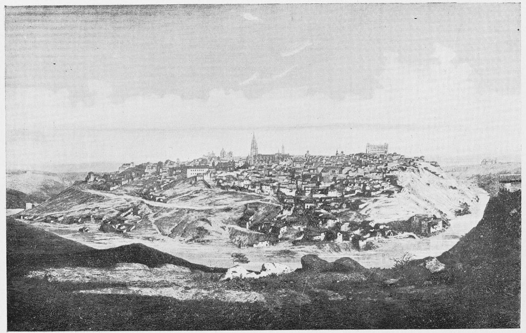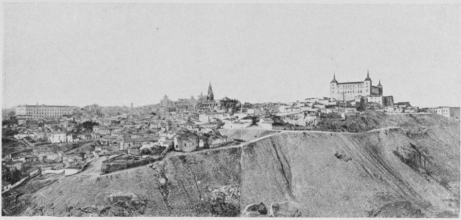 The author would, in the ordinary way, be hard put to it to frame a reasonable apology for compiling a new volume on the subject of the ancient and royal city of Toledo. Artists have reproduced its wonder of imposing and picturesque detail; archæologists have explored its many monuments; historians have discovered in its archives a record which, for many centuries, represents the log-book of Spain. There is no secret, apart from the impenetrable mystery of its origin, which has not been revealed; its chronicle is a well-thumbed volume. The beginnings of Spanish history go no further back than the earliest references we have to the natural stronghold founded on the seven rocks on the banks of the Tagus, and Spanish tradition claims for the citadel an antiquity coeval with the sun and stars. Both the history and the legends have been transcribed in many languages, yet, in a series which is intended to embrace all Spain in its compendious design, the inclusion of the twice-told tale of the “city of generations” carries with it an unquestionable justification.