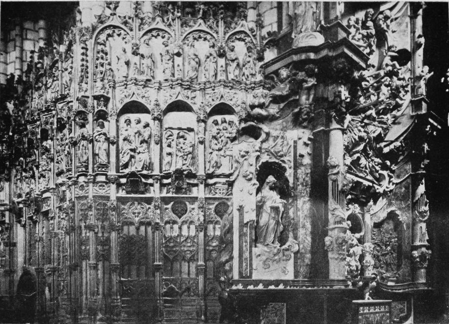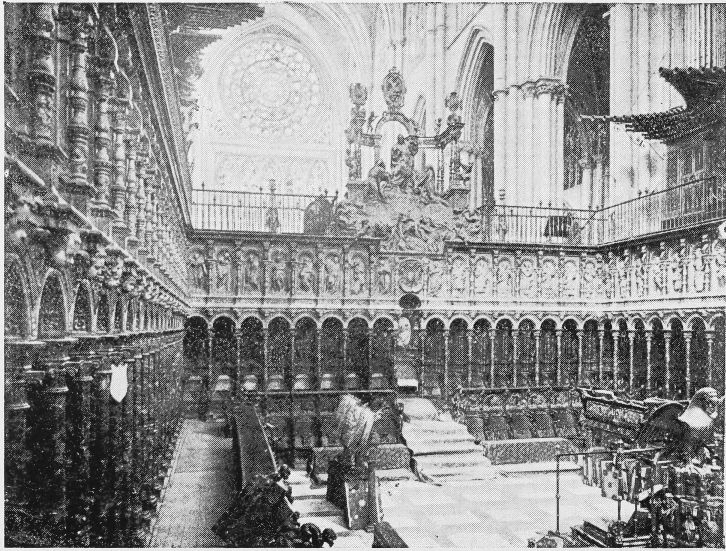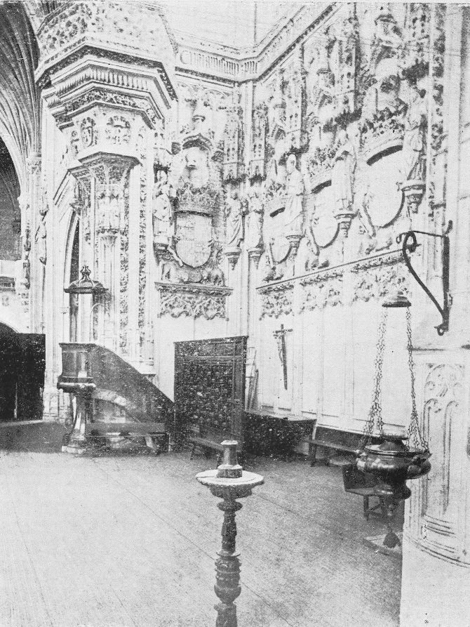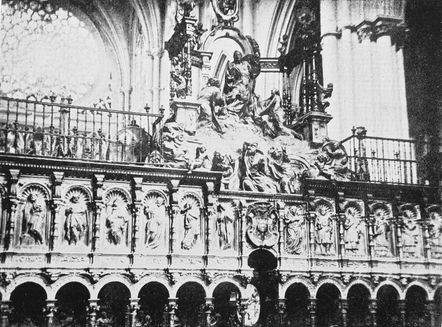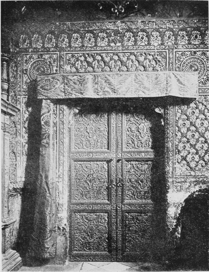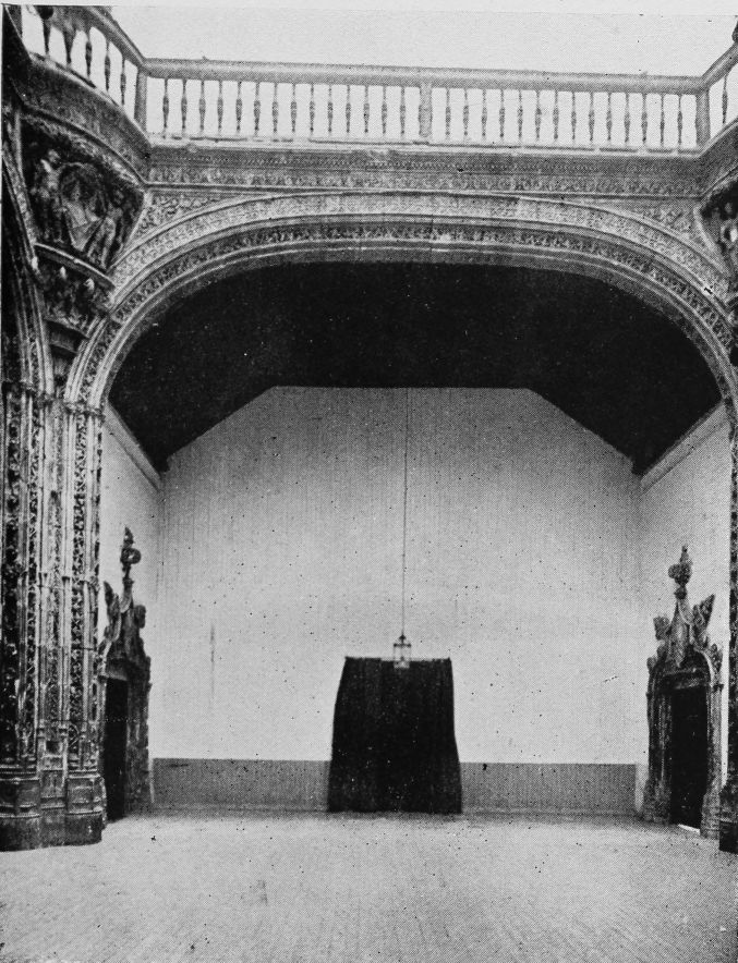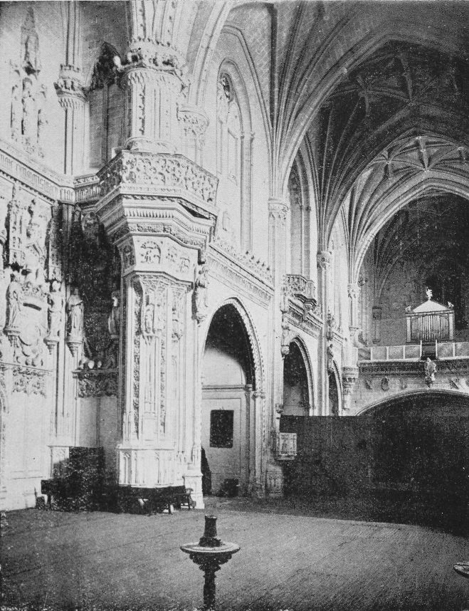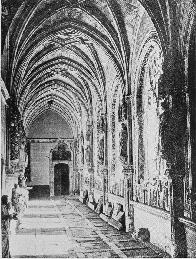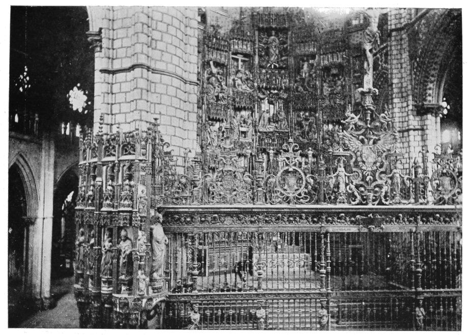 The impression of grandeur and melancholy, of strength and silence, which the traveller receives from a visit to the one-time capital of the Peninsula, cannot be suggested by the written word, but it may be that the illustrations will recall, if they do not suggest, the feeling which the city inspires. Toledo is mediæval in its architecture and its atmosphere. The Moorish occupation has left no more than a scratch upon its Gothic character; the spirit of modernity has been defied by its virile antiquity. But the Moslem remains have been made a feature of the illustrations, and, as in the volumes devoted to Seville, Cordova, and Granada in this series, the intricacies of Arabian decoration have been extensively reproduced.