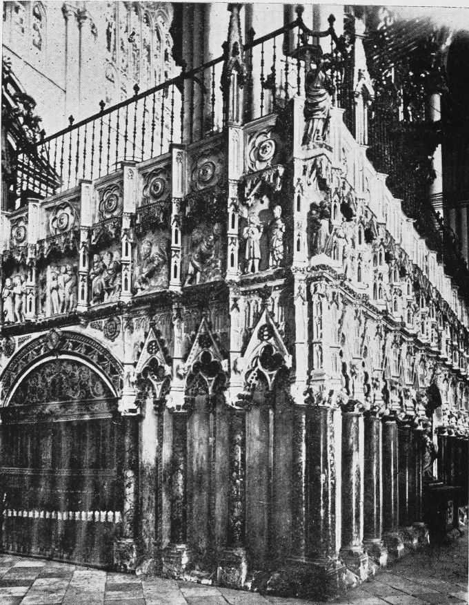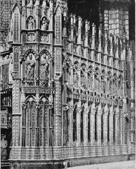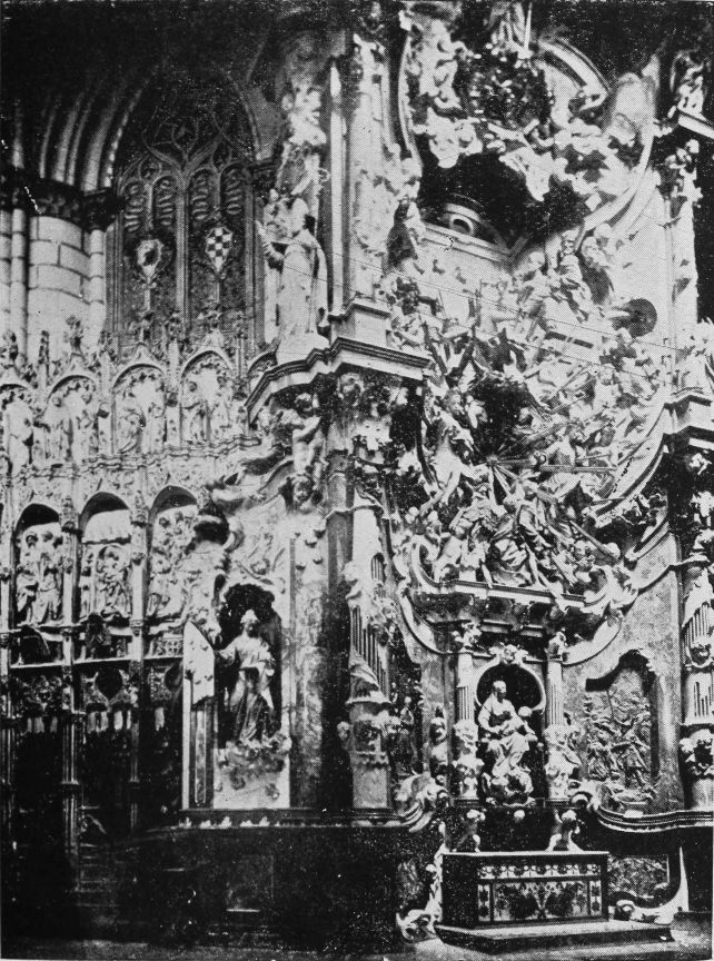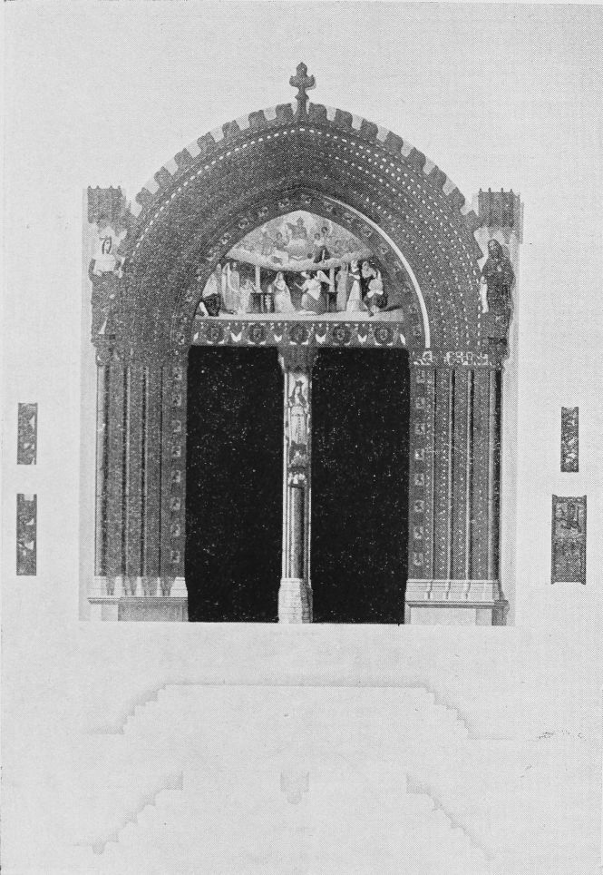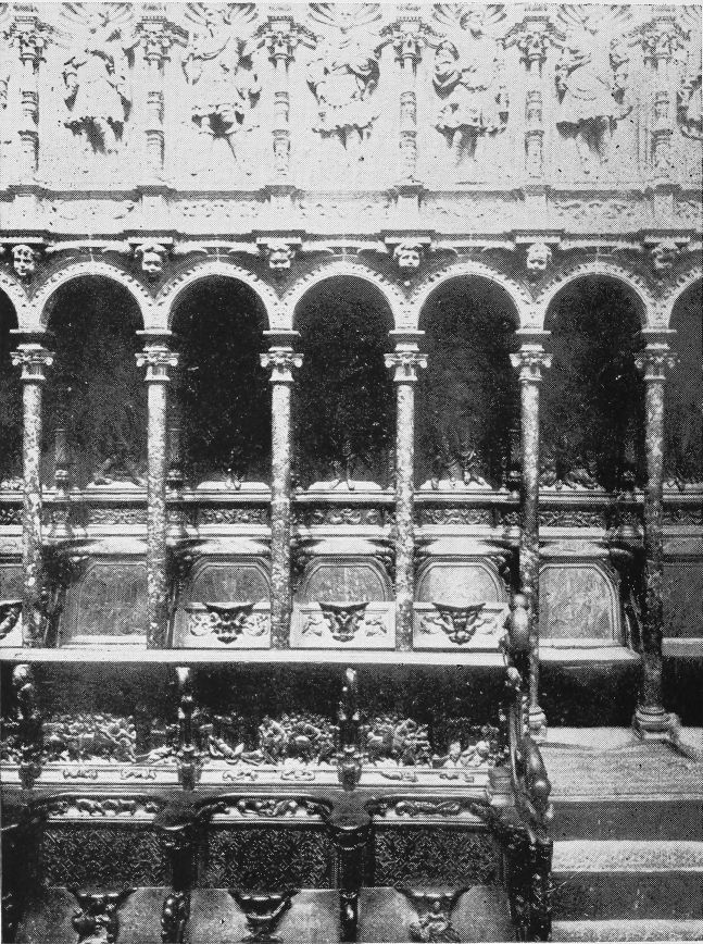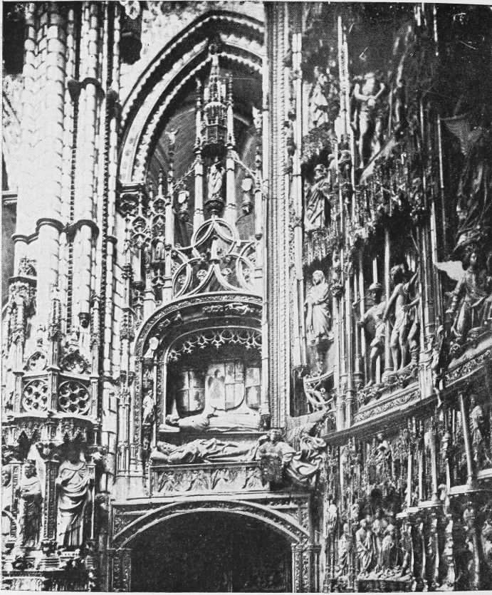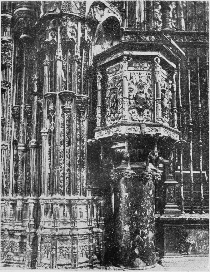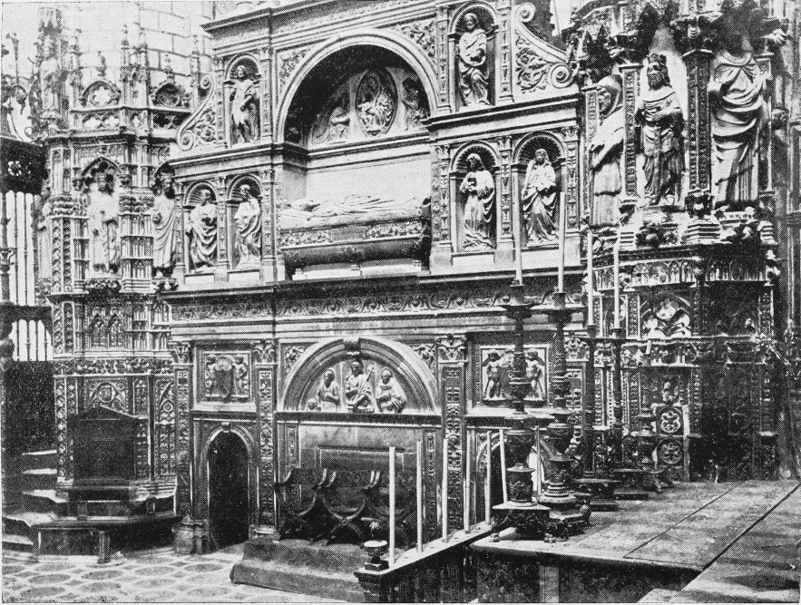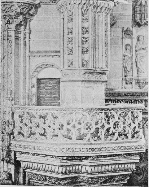 The impression of grandeur and melancholy, of strength and silence, which the traveller receives from a visit to the one-time capital of the Peninsula, cannot be suggested by the written word, but it may be that the illustrations will recall, if they do not suggest, the feeling which the city inspires. Toledo is mediæval in its architecture and its atmosphere. The Moorish occupation has left no more than a scratch upon its Gothic character; the spirit of modernity has been defied by its virile antiquity. But the Moslem remains have been made a feature of the illustrations, and, as in the volumes devoted to Seville, Cordova, and Granada in this series, the intricacies of Arabian decoration have been extensively reproduced.