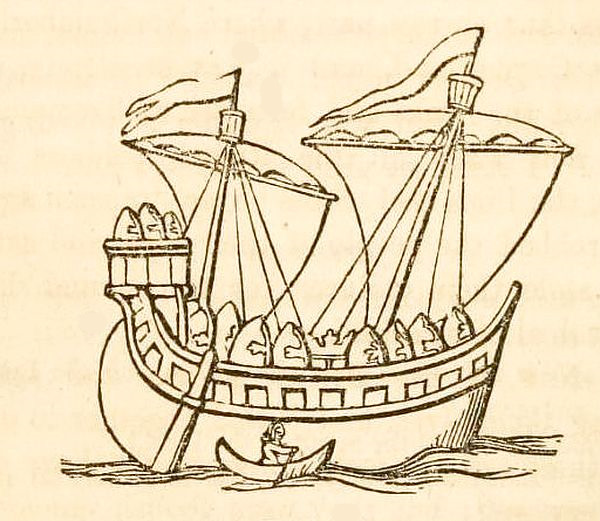 8. They carried these goods in carts, drawn by oxen, to the coast of Hampshire, then crossed over to the Isle of Wight, in light boats, made of wicker, and covered with hides or skins, in shape something like half a walnut shell.