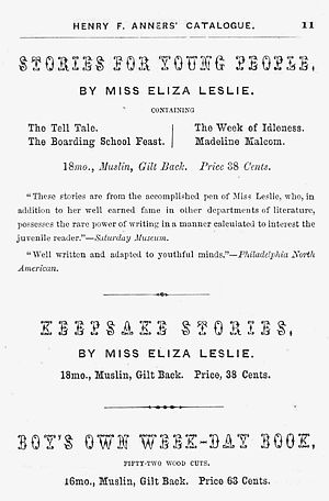 “These stories are from the accomplished pen of Miss Leslie, who, in addition to her well earned fame in other departments of literature, possesses the rare power of writing in a manner calculated to interest the juvenile reader.”—Saturday Museum.