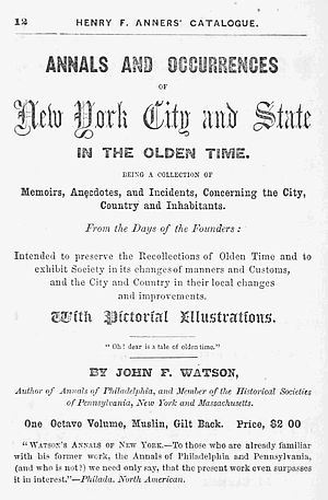 “Watson’s Annals of New York.—To those who are already familiar with his former work, the Annals of Philadelphia and Pennsylvania, (and who is not?) we need only say, that the present work even surpasses it in interest.”—Philada. North American.