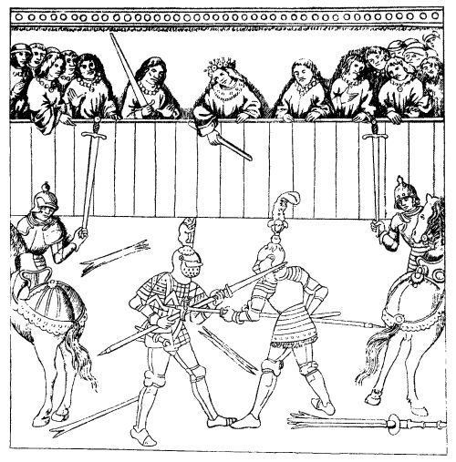 [194] The term “tourney” is very frequently employed by chroniclers to express the mêlée, though also often applied in a general sense.