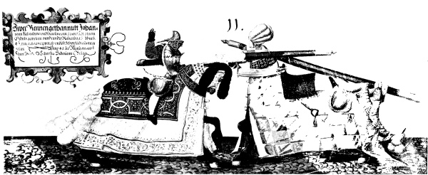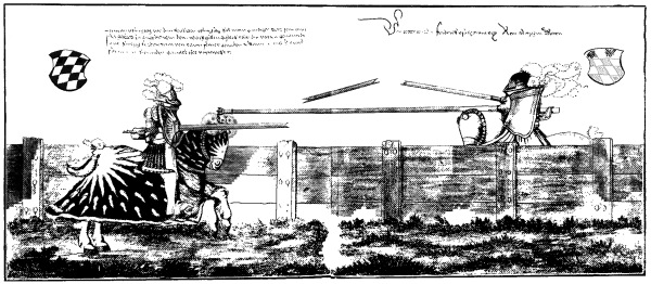 The admirable version of Freydal, by Querin von Leitner, pictures the jousts of the Emperor Maximilian I, especially those of the last quarter of the fifteenth century. It presents a veritable mine of information concerning the tournament of that period, placing the technique of the subject on a sound basis. Even this account, however, is hardly contemporaneous.
