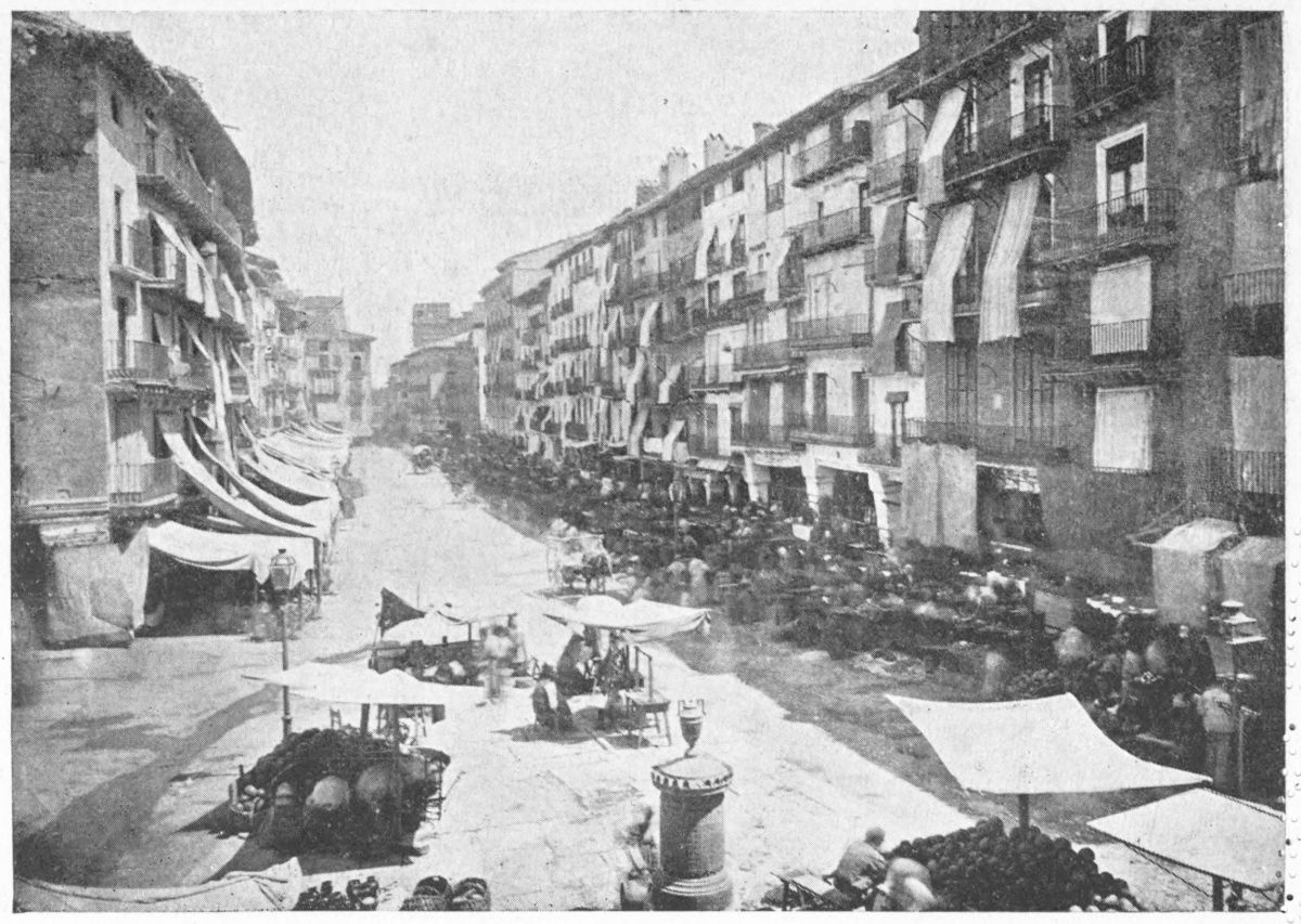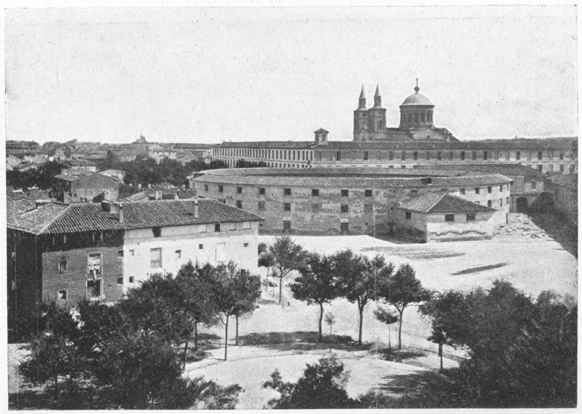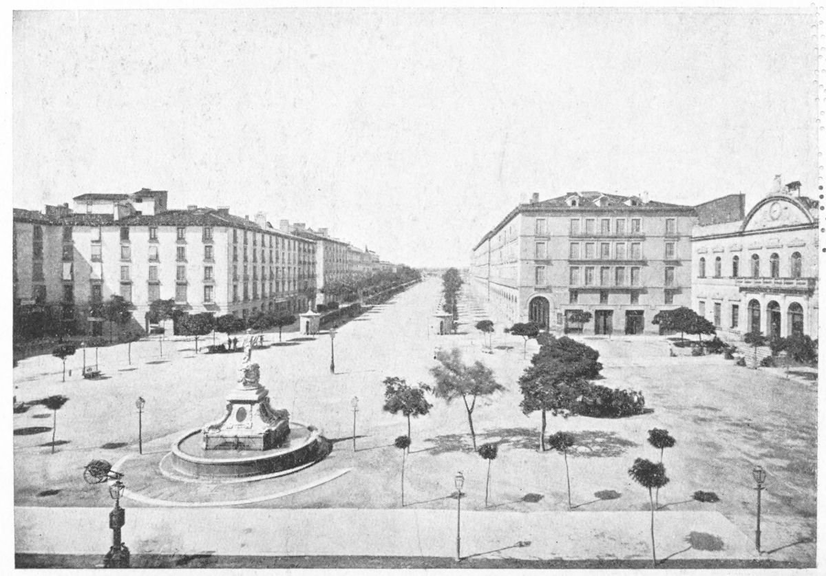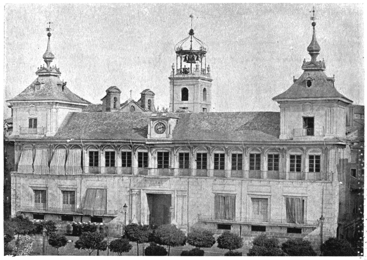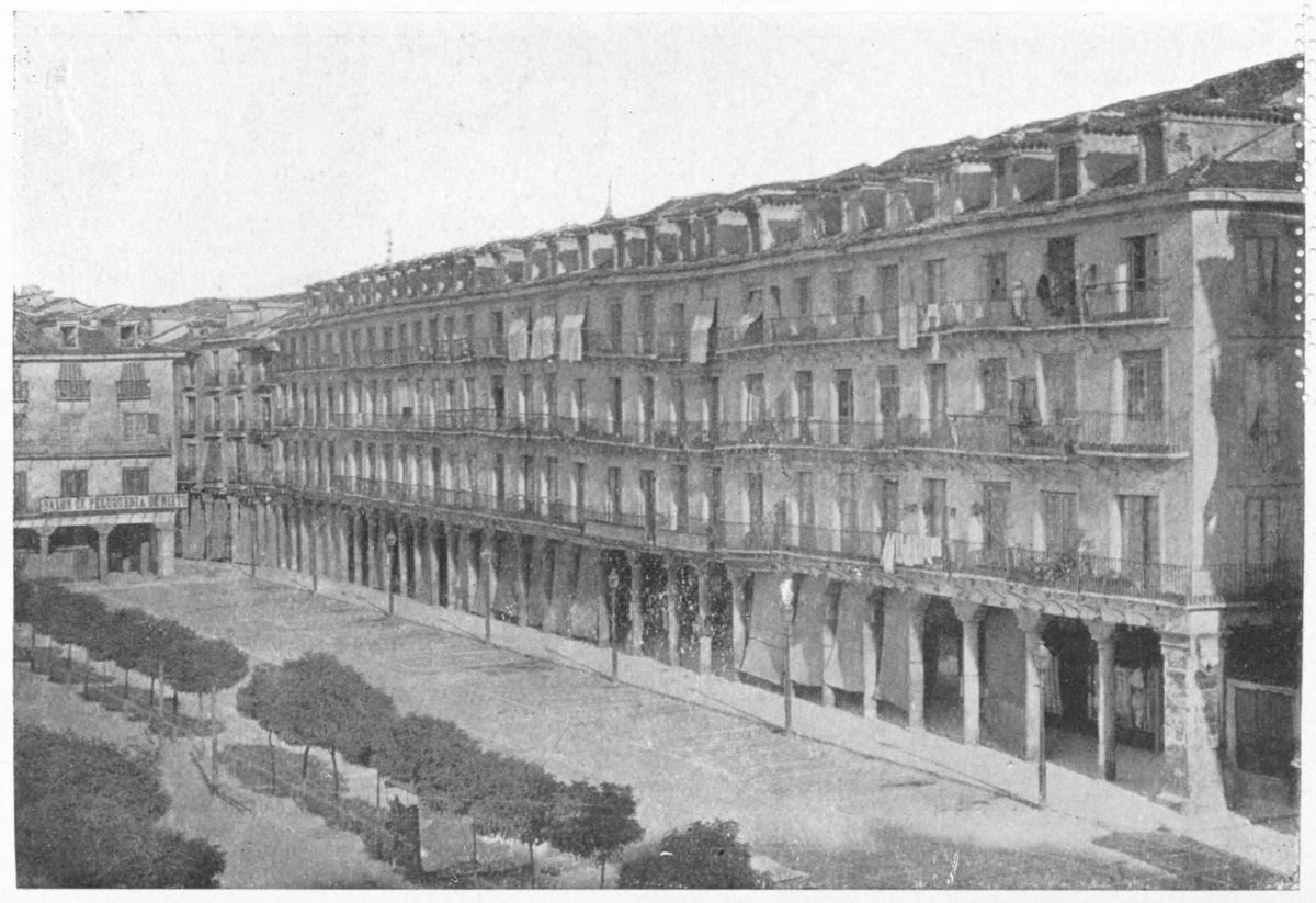 The handsome Accra de Recoletos, which looks across the spacious Campo Grande—the city’s principal park—leads from the triumphal Puerta del Carmen, commemorating the reign of Charles III., to the majestic Arch of Santiago. We pass through, and presently reach the Plaza Mayor, now called the Plaza de la Constitucion, the focus of the city’s life.