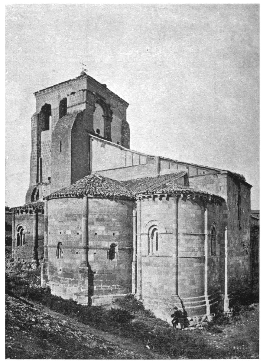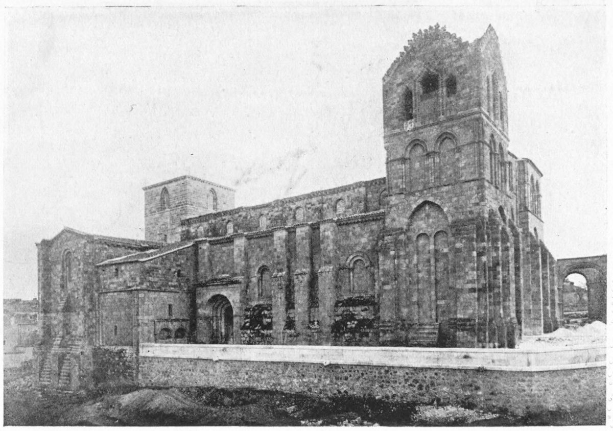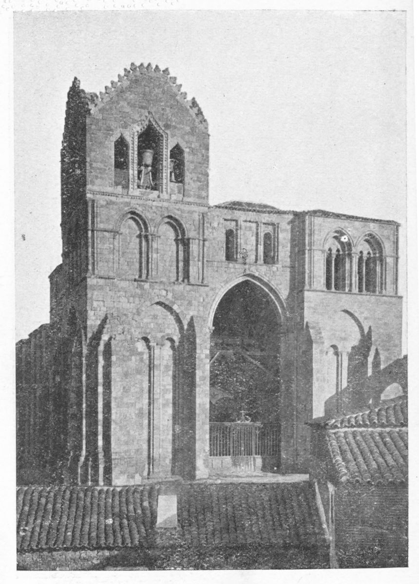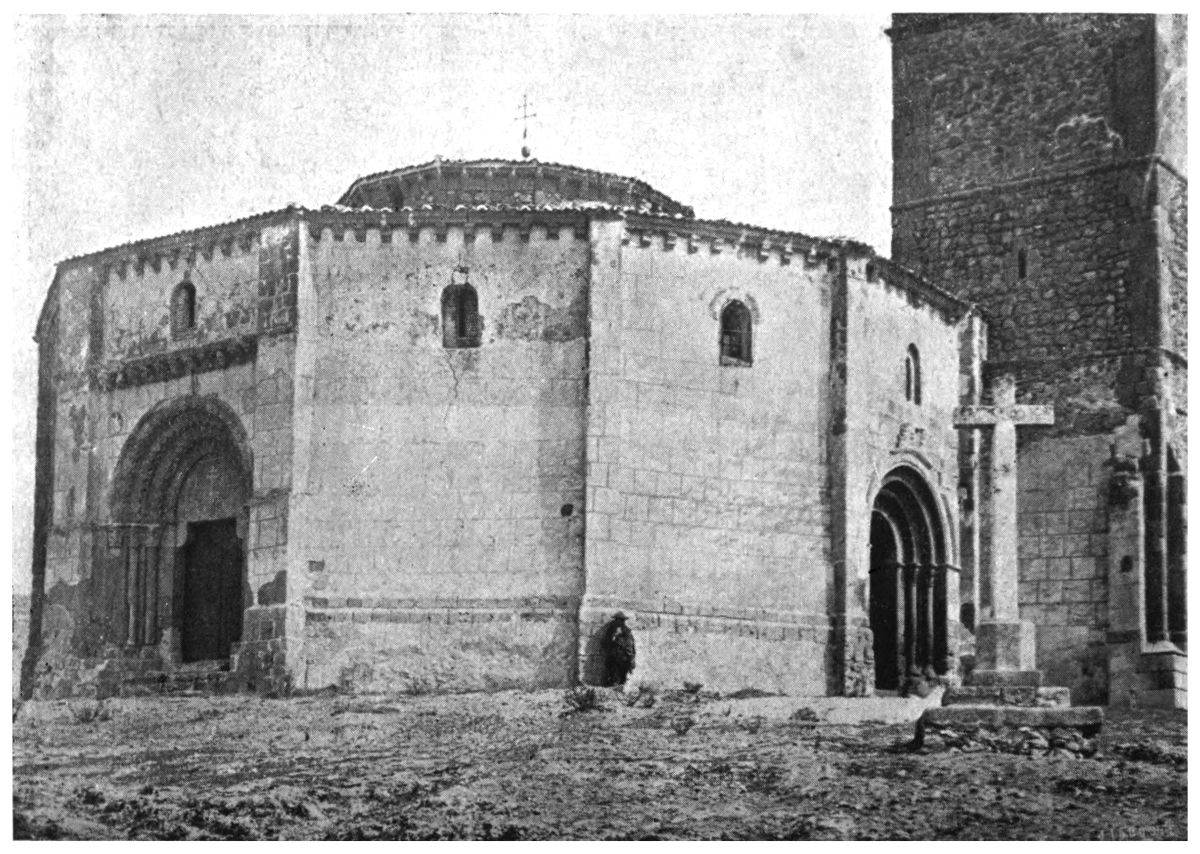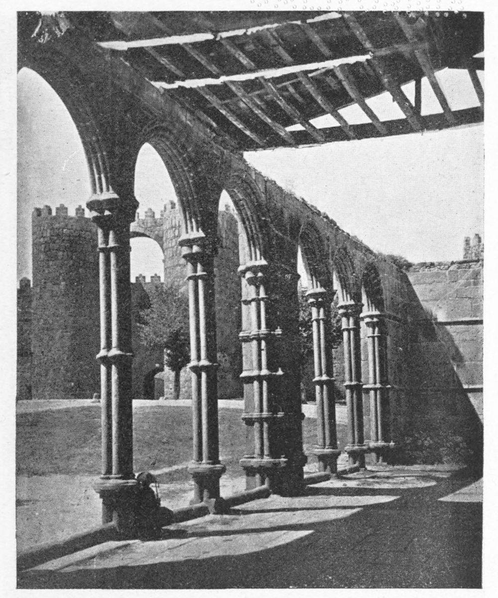 On the north this venerable church is flanked by a very beautiful Romanesque cloister of fourteen semicircular arches in three bays. The shafts, says Street, are moulded and wrought in imitation of the coupled columns of early Italian artists. This cloister, together with the steeple, makes up the most picturesque group of buildings in Valladolid, and is well worth careful preservation, if not restoration.