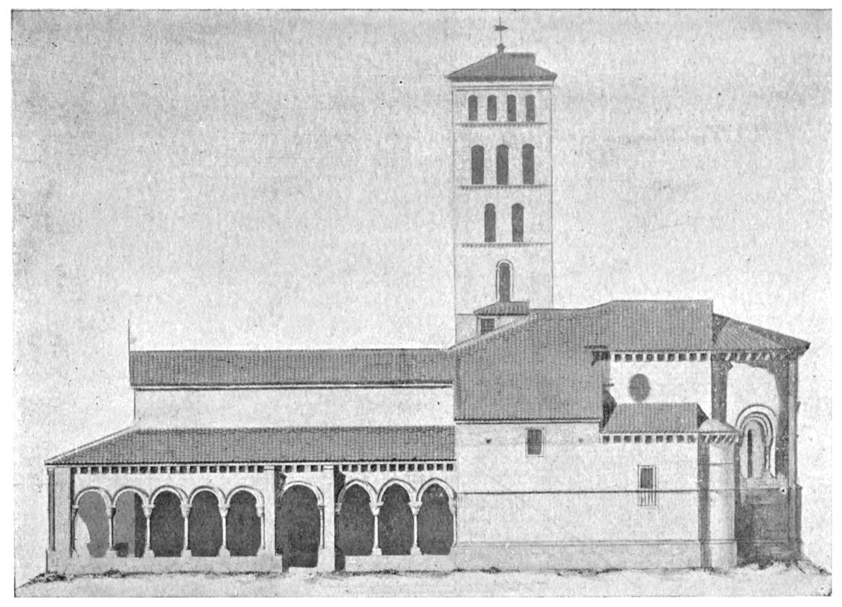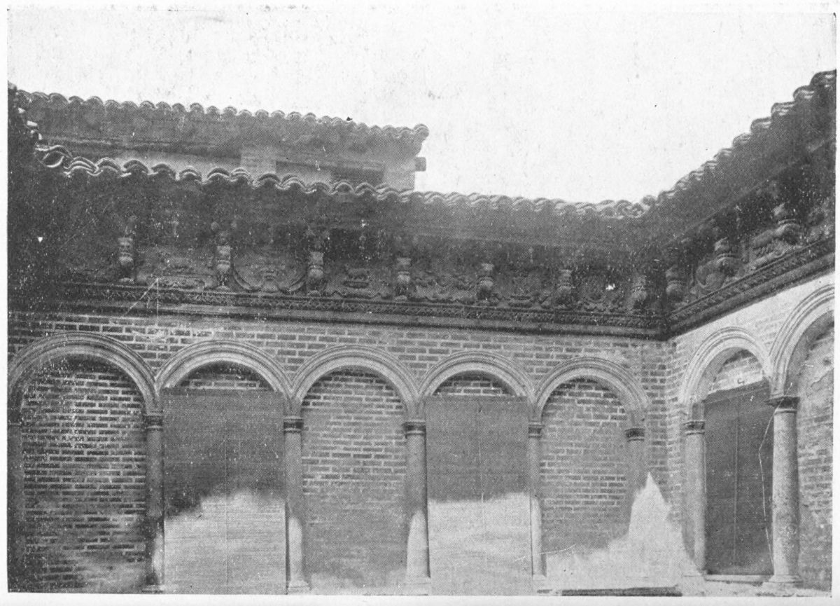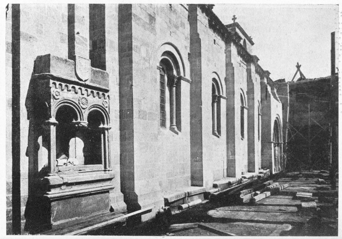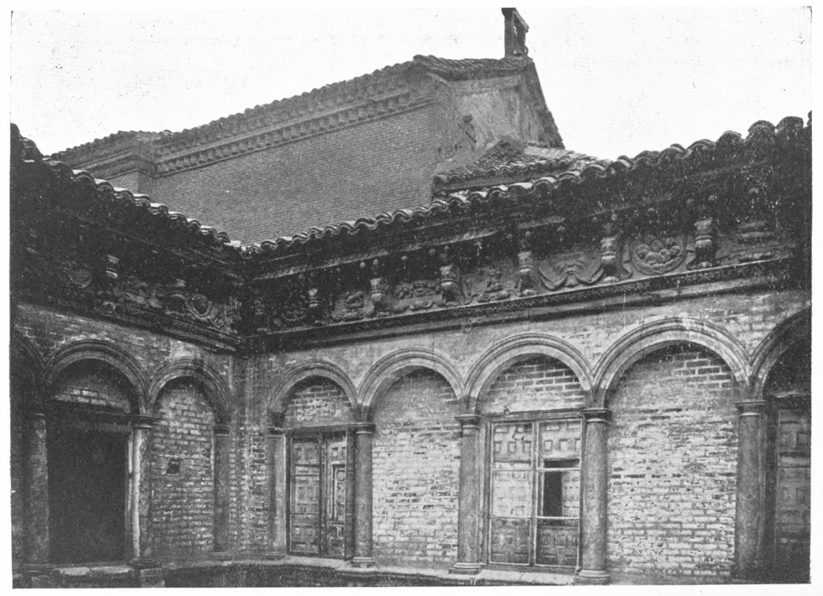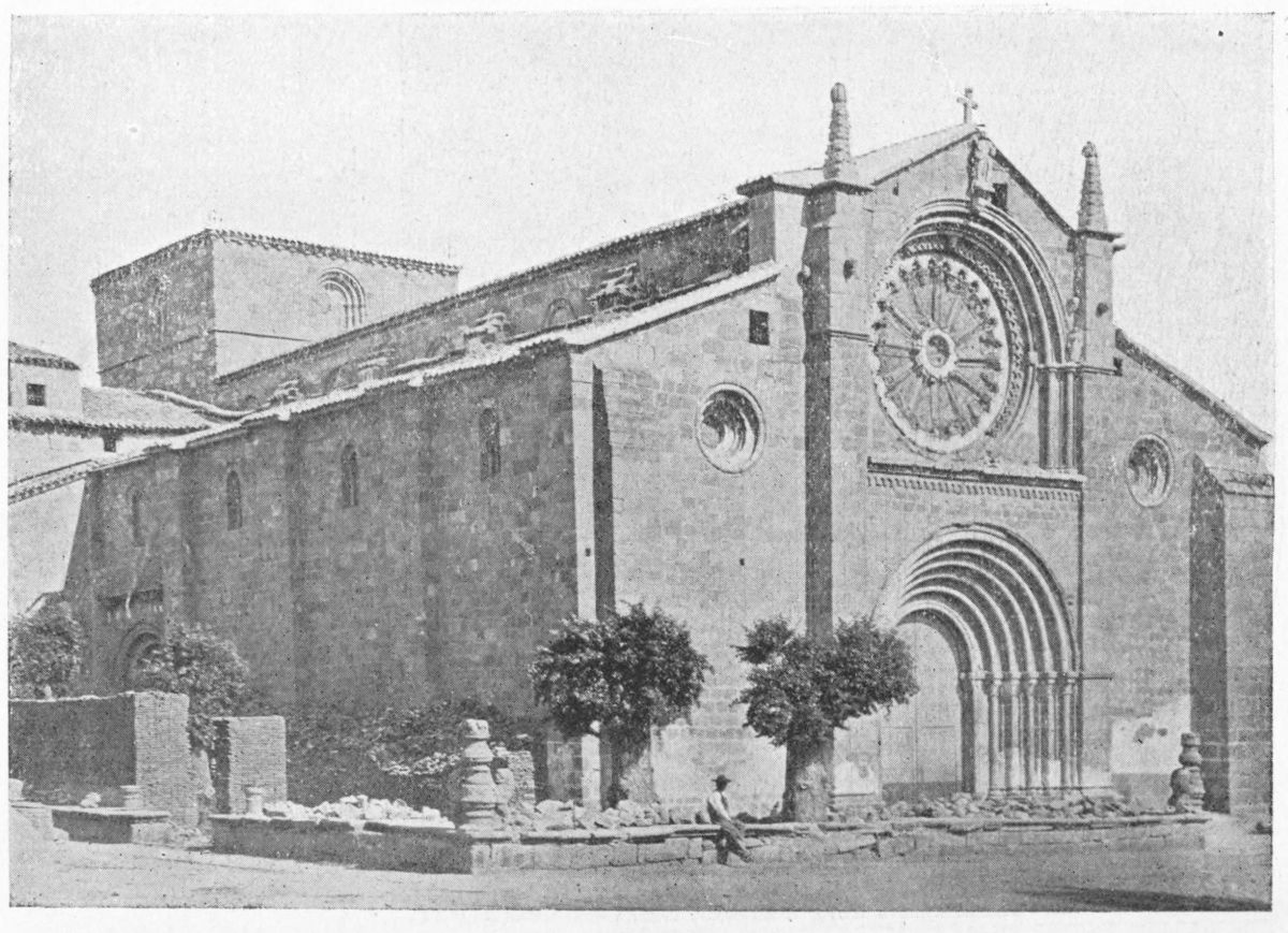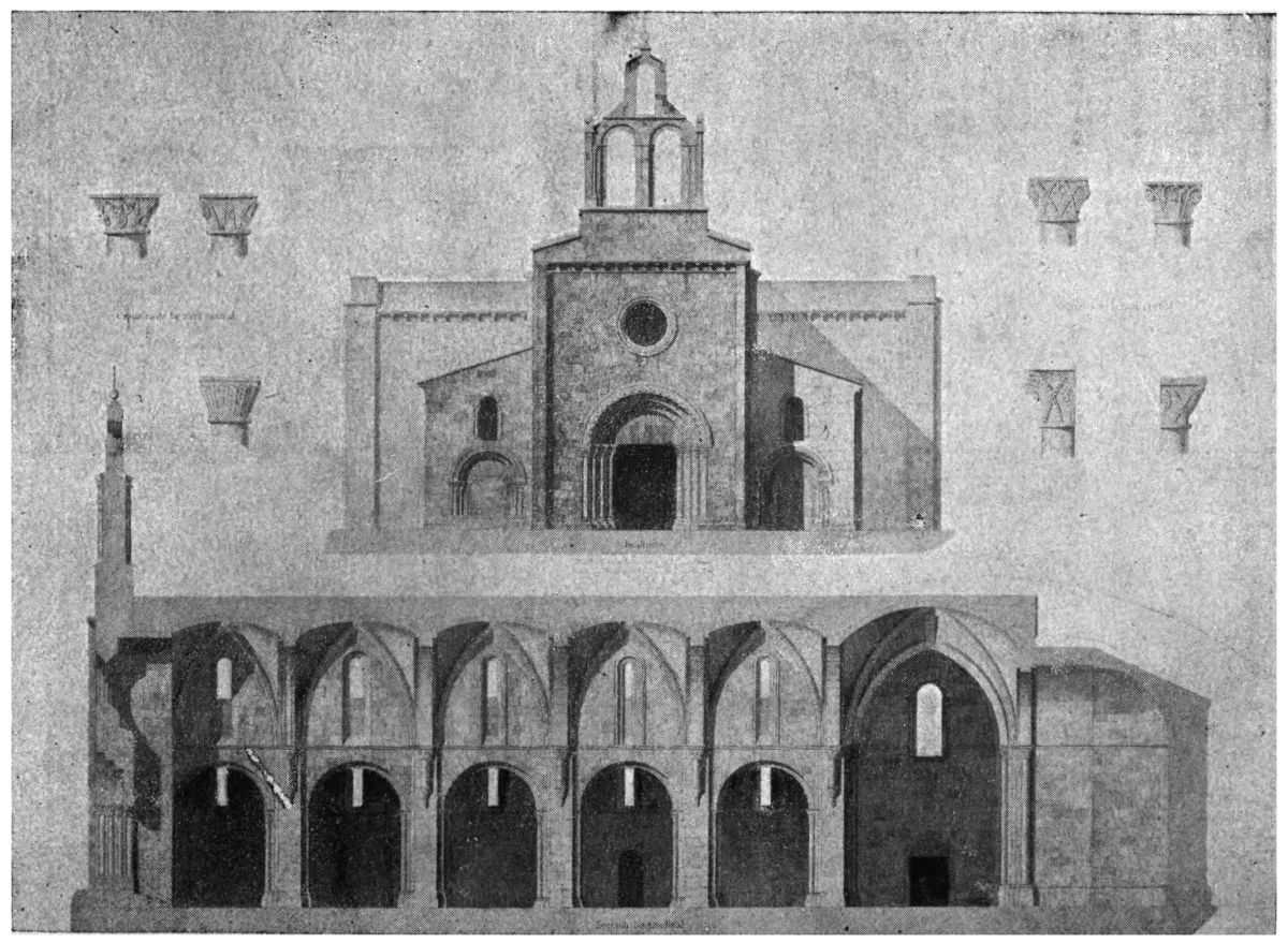 On the north this venerable church is flanked by a very beautiful Romanesque cloister of fourteen semicircular arches in three bays. The shafts, says Street, are moulded and wrought in imitation of the coupled columns of early Italian artists. This cloister, together with the steeple, makes up the most picturesque group of buildings in Valladolid, and is well worth careful preservation, if not restoration.