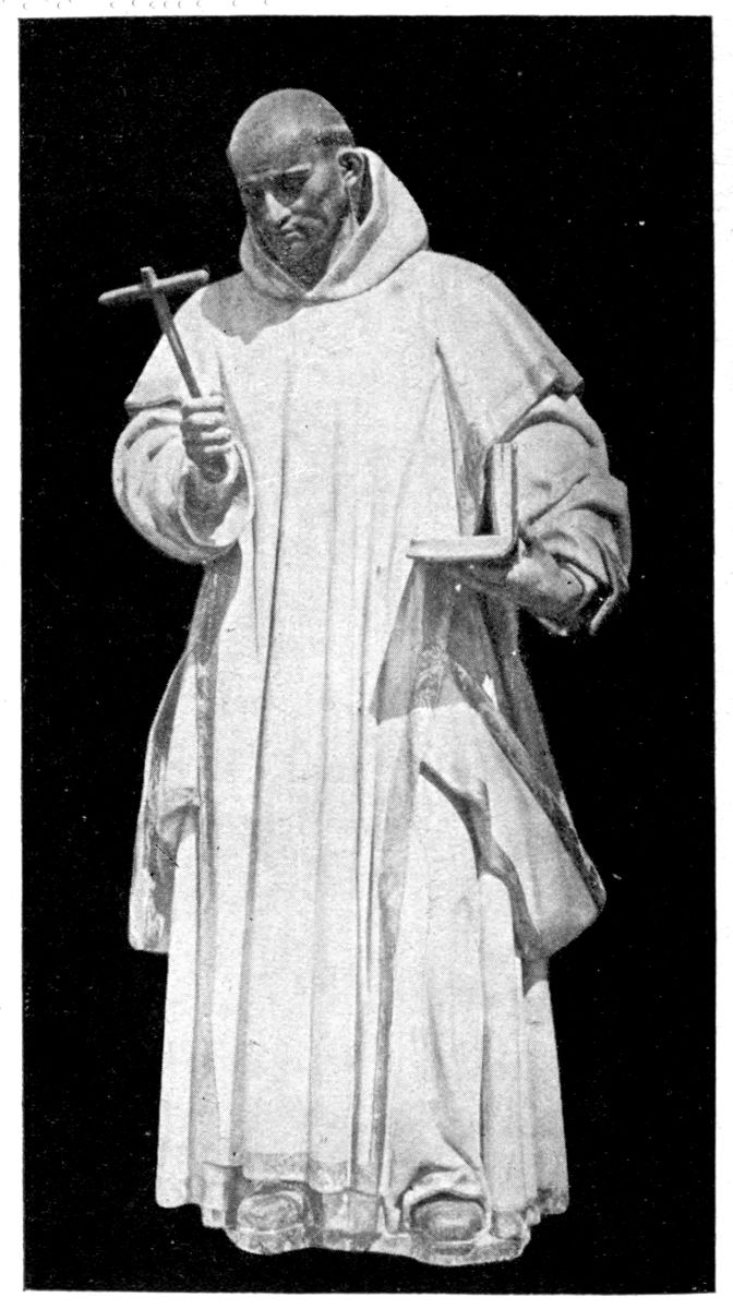 The genius of Juan de Juni, who was living at Valladolid in 1570, is best represented by his wooden statue of the Dead Christ, from the convent of San Francisco. So ghastly is the realism of this figure, that looking at the rigid limbs—more like those of a gladiator than of the Crucified—we feel that corruption is about to take place, and avert our eyes in horror. One is tempted to hold one’s nose, as Murillo is said to have done while contemplating a canvas by Valdes Leal. Not less vigorous and infinitely more attractive is the noble statue of St. Bruno by the same sculptor.