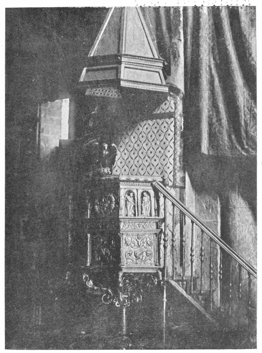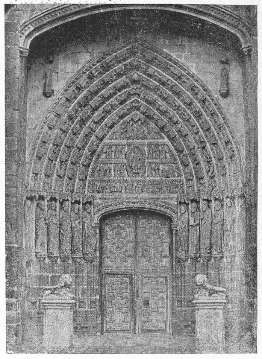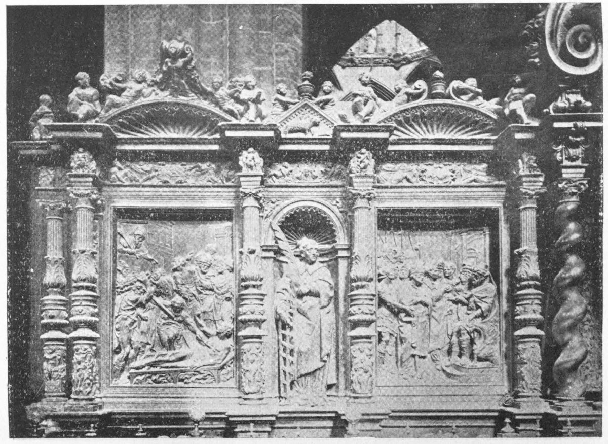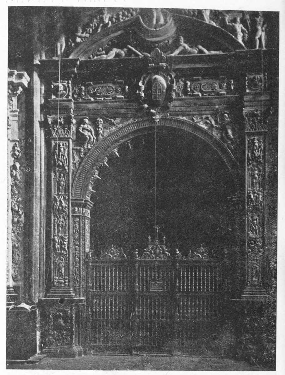 The interior exhibits an interesting blending of the Romanesque and Gothic styles. On the outer door, defaced by a modern portico, formerly hung the knockers wrenched off the gates of the Mezquita at Cordova by the first Count Armengol. The mouldings of the arch are Romanesque, but Gothic is the beautiful groining of the interior. At the west end of the church is a gallery for the choir, with stalls and organ. In the days when this was built churches were built for the laity, and the clergy did not insist on taking up the greater part of the nave, as they did in after years. The chapel of the Counts of Cancelada contains some good paintings. The most valu{26}able accessory is, however, the reredos by the celebrated Juan de Juni, begun in 1551 and finished in 1557. The work betrays an extraordinary degree of skill and vigour, but it is over-elaborate and in parts fantastic.