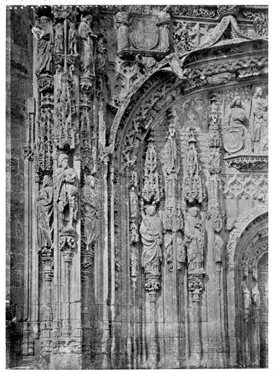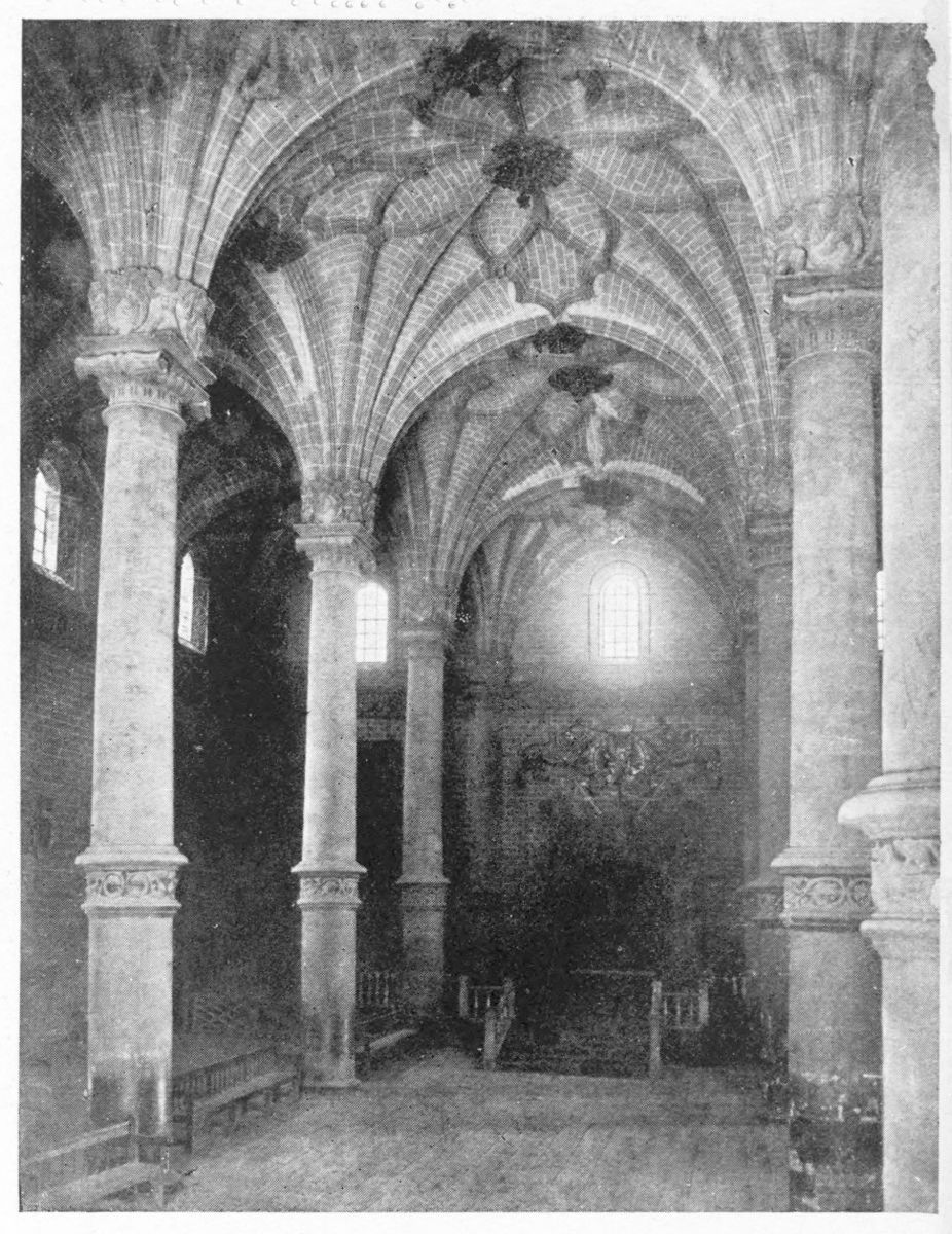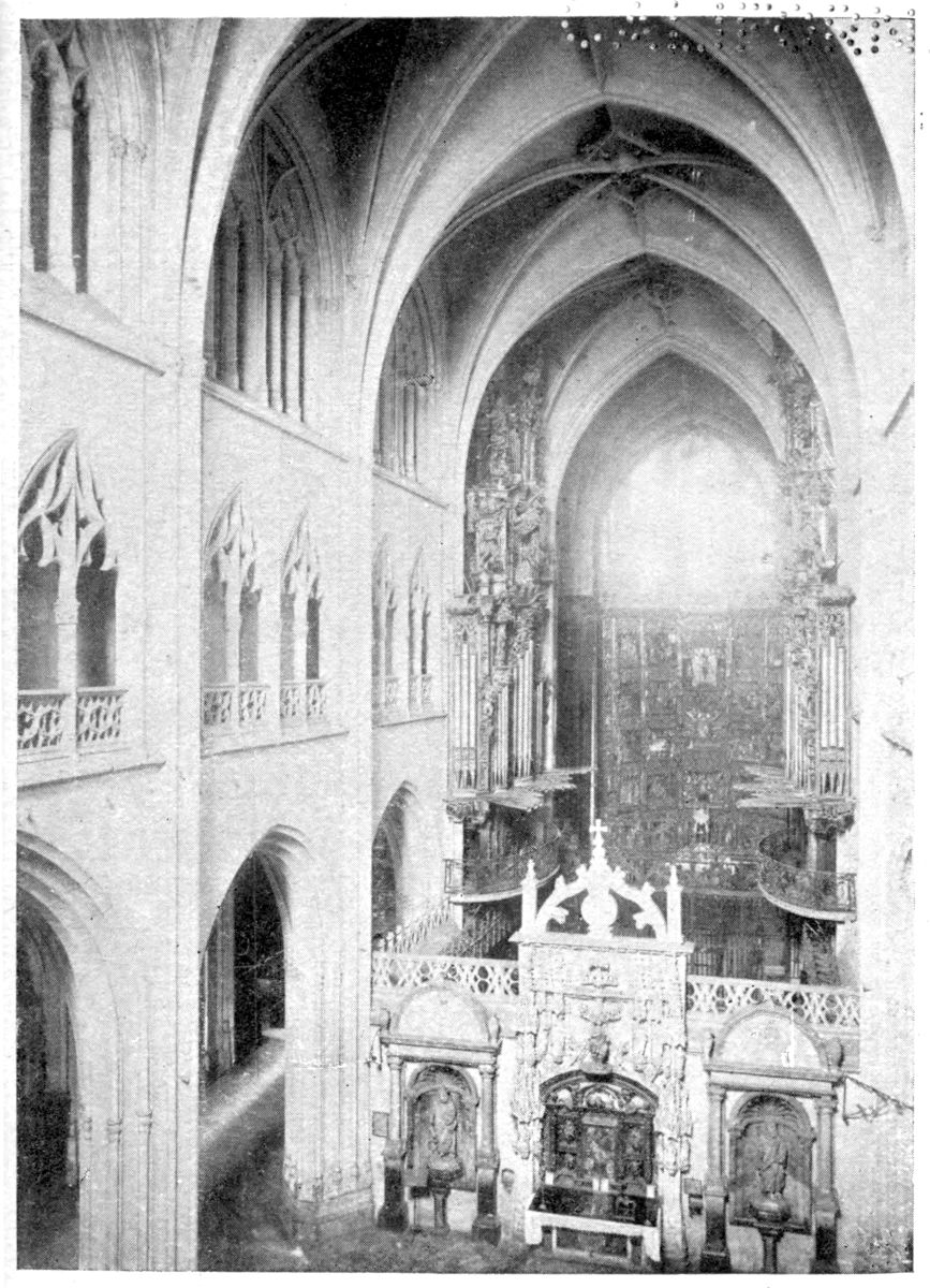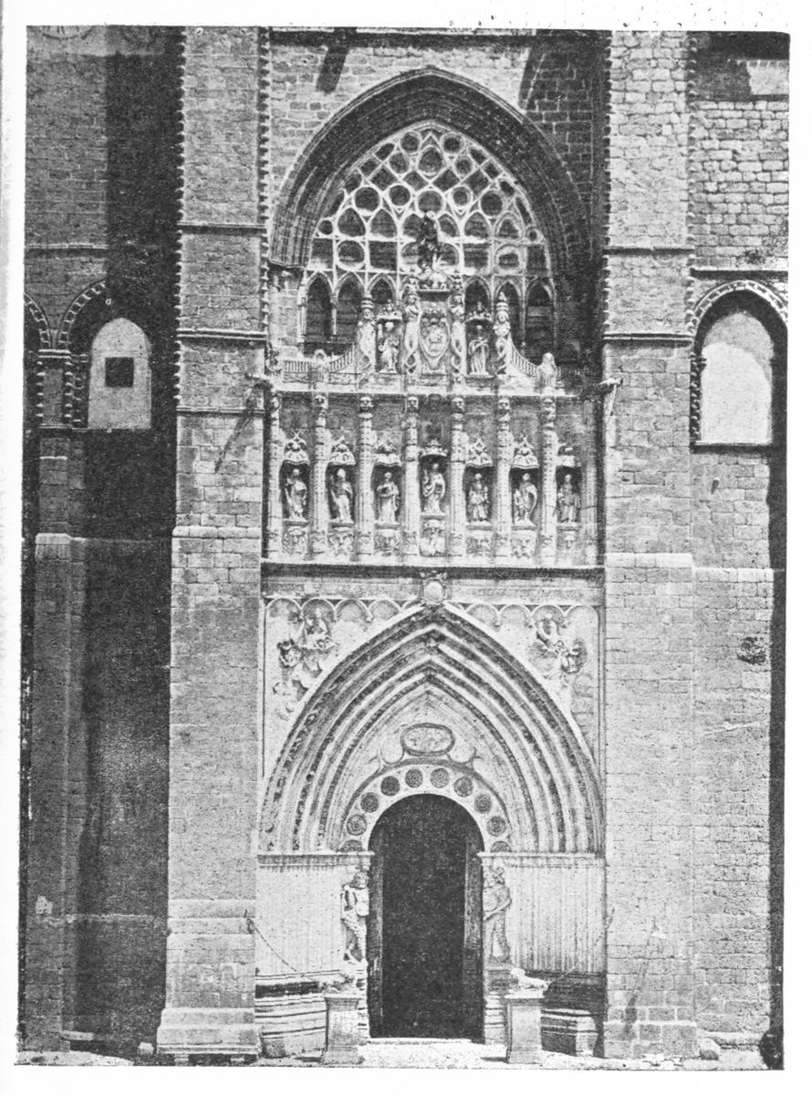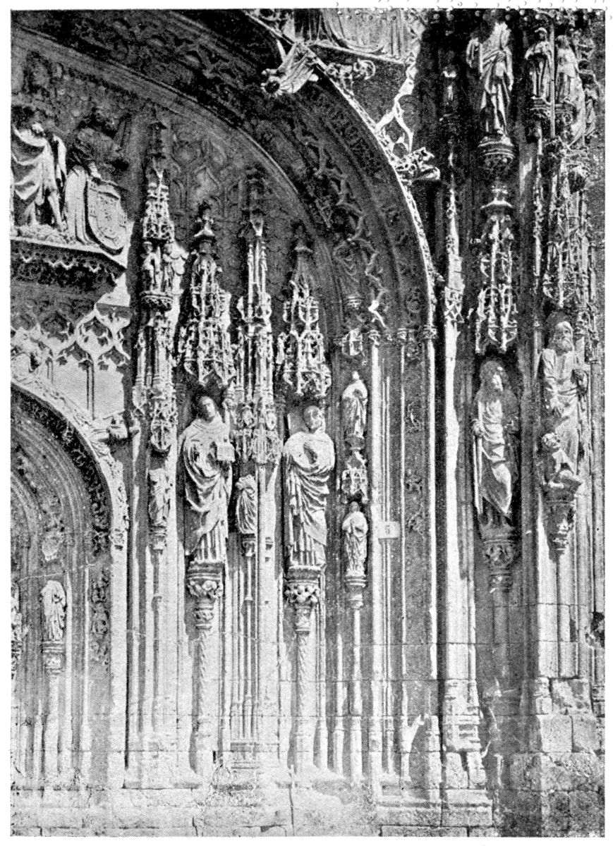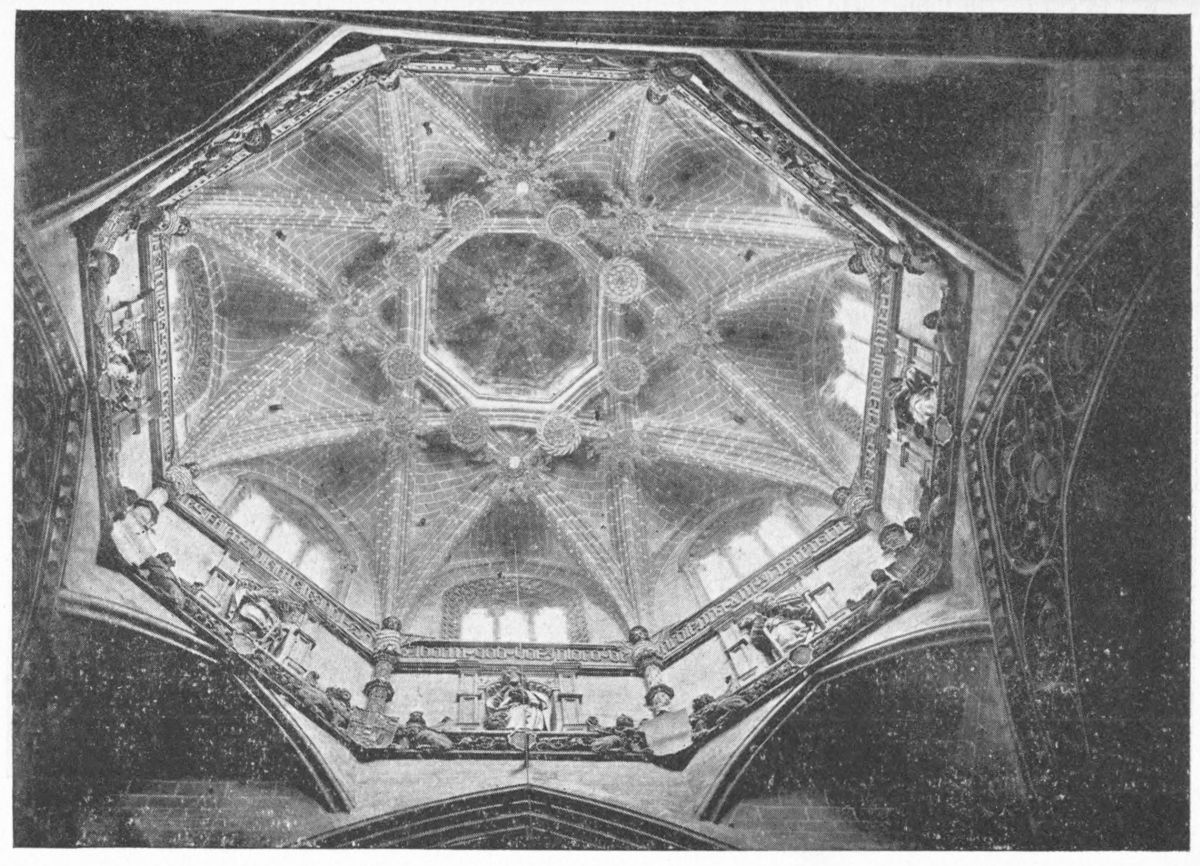 Over the chancel is the lantern, octagonal in plan, which replaced an earlier one in the first quarter of the sixteenth century. The work was undertaken by Enrique de Egas, only at the{150} express command of the king. The lower part is adorned with statues in niches, and with the canting arms (the half-moon) of the family of Archbishop de Luna.