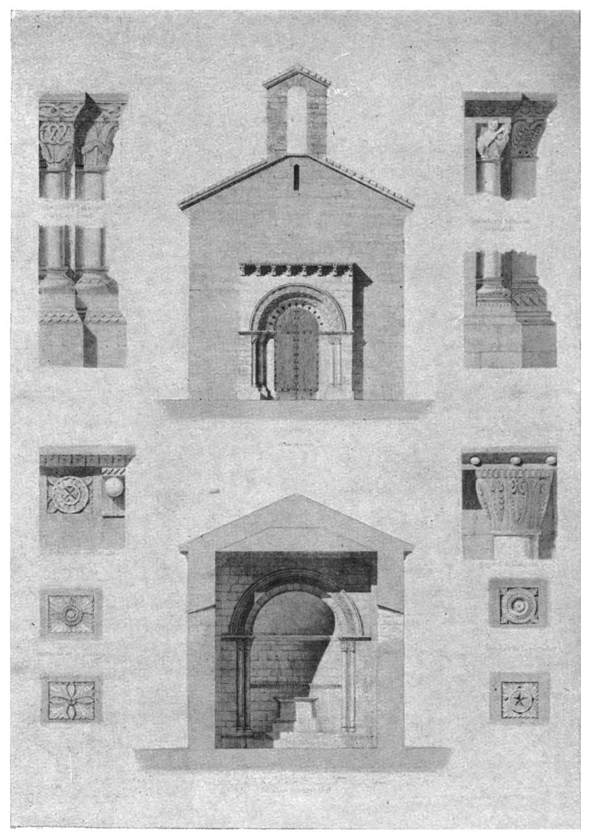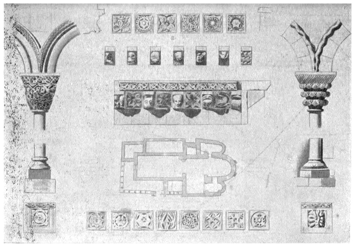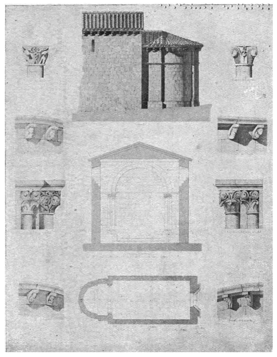PLAN, PRINCIPAL ENTRANCE, AND DETAILS OF THE CHURCH OF SAN JUAN DE AMANDI (CONCEJO DE VILLAVICIOSA)