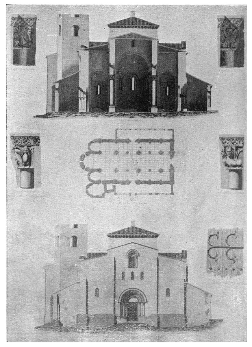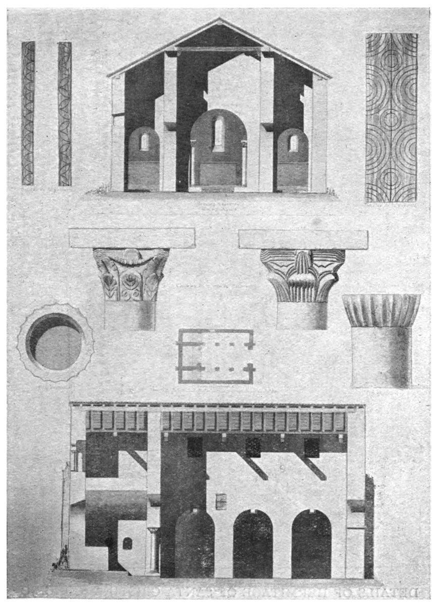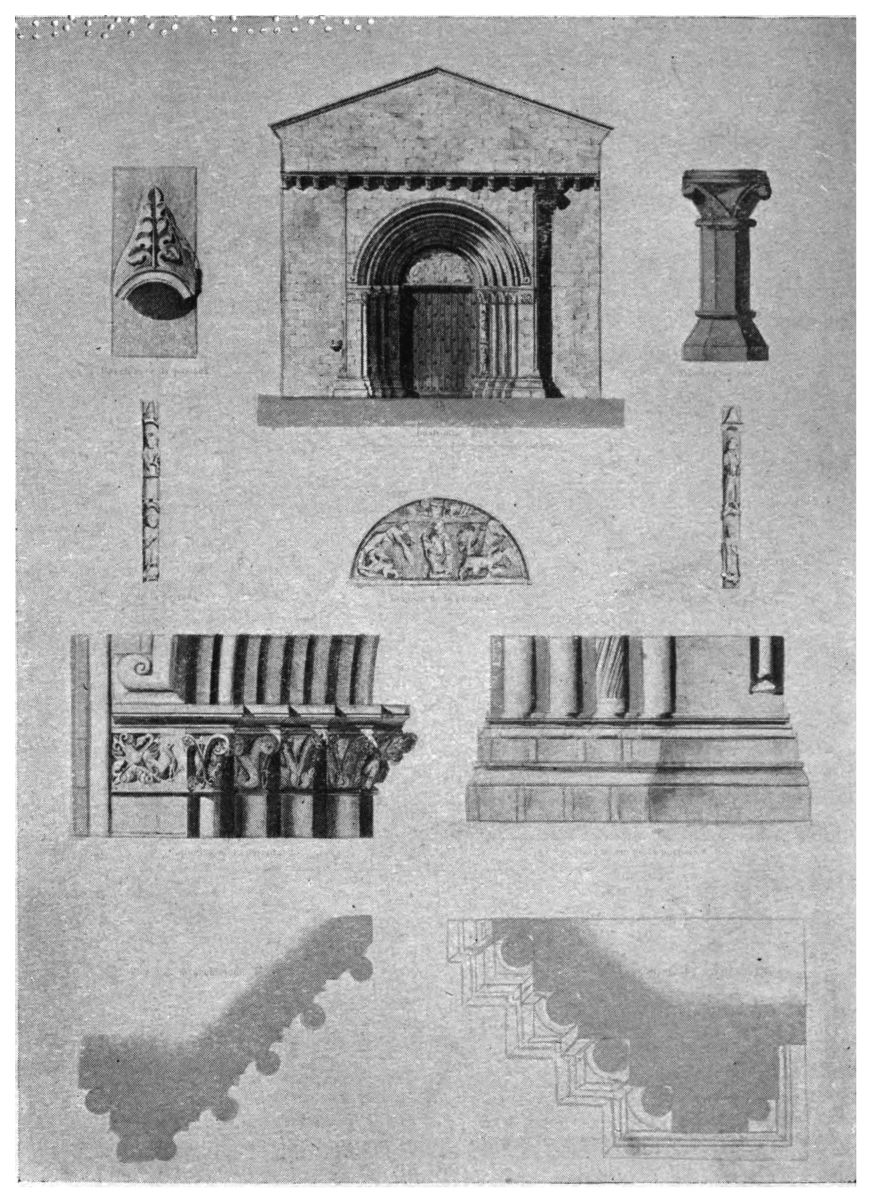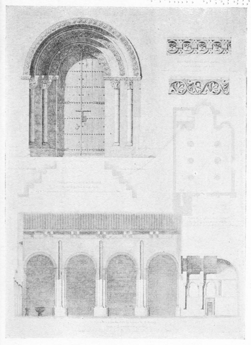 PLAN, PRINCIPAL ENTRANCE, AND DETAILS OF THE CHURCH OF SAN JUAN DE AMANDI (CONCEJO DE VILLAVICIOSA)
