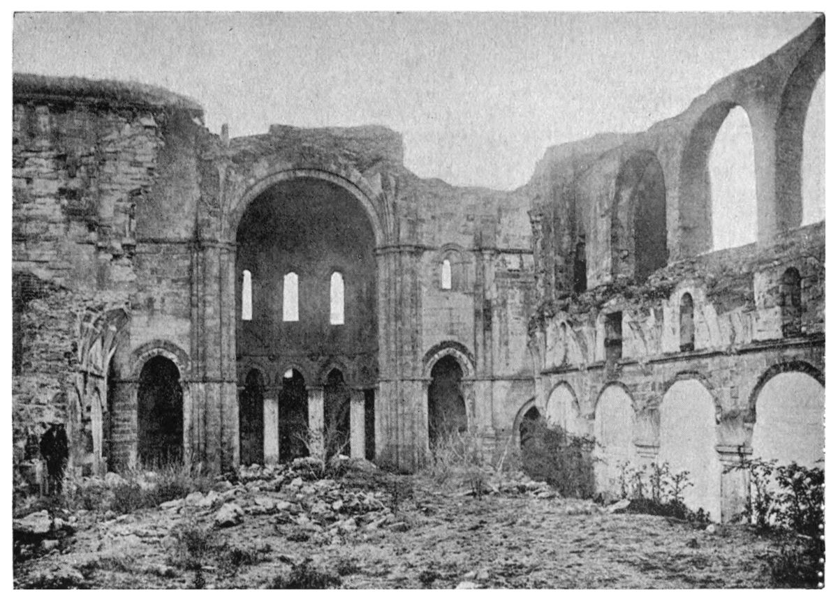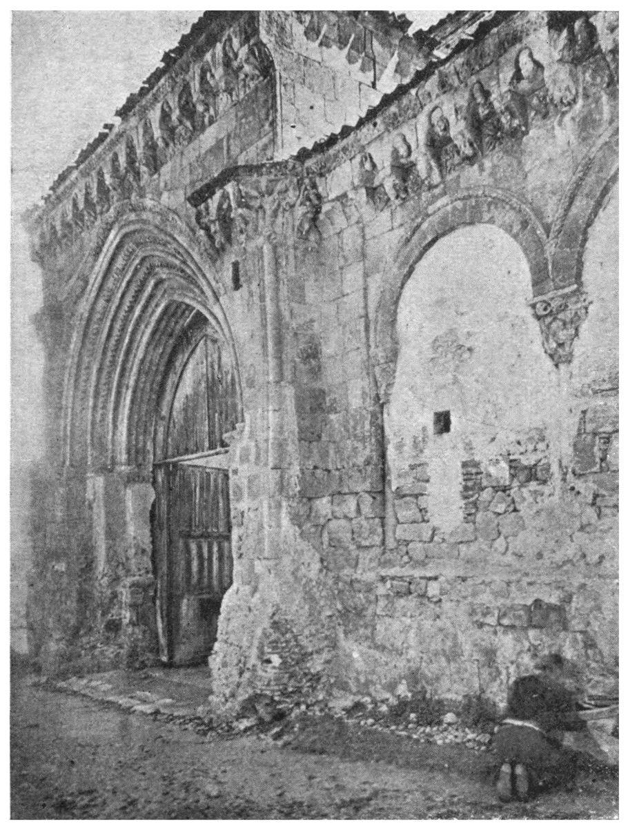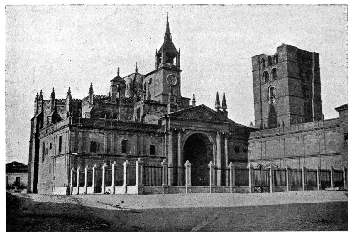 Adjacent to the cathedral are some remains of the Iglesia Mayor, founded by Pedro Ansúrez, and rebuilt in the reign of St. Ferdinand. A doorway, still standing, and the various scattered pillars are in the Romanesque style, but there are also traces of Gothic work. A cloister existing at the end of the sixteenth century is described as one of the finest in Spain, containing many sculptures, all coloured, and tombs of notable people. Part of this cloister has gone to form a room called the Library, but that it still contains books I was unable to ascertain.