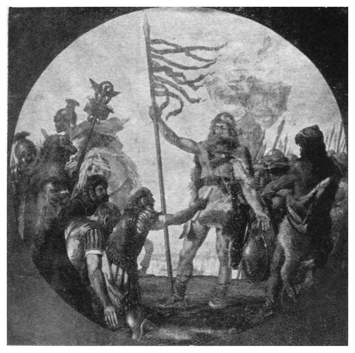 QUEEN URRACA AND ARIAS GONZALO. DECORATIVE PAINTING IN THE TOWN HALL. BY RAMON PEDRO Y PEDRET