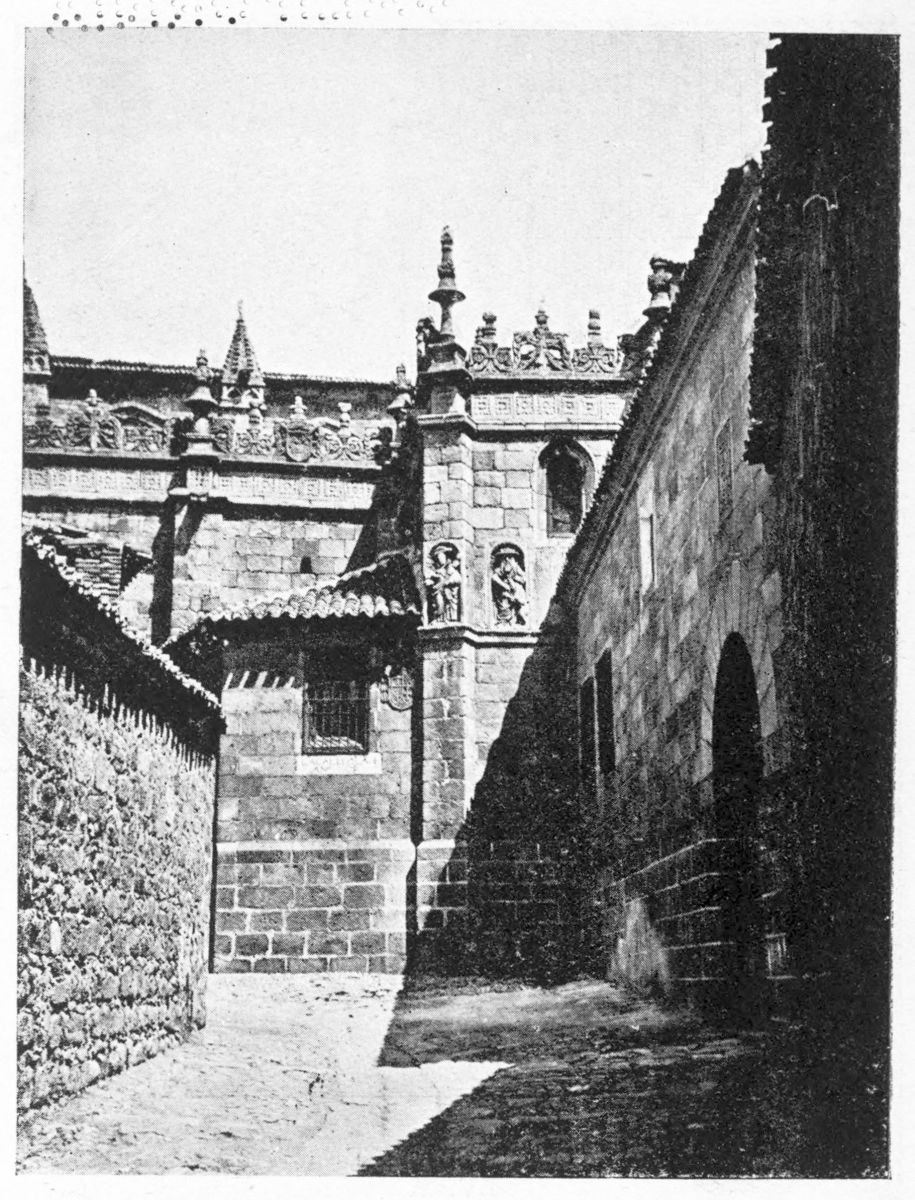 A city which was so long the capital of the monarchy—the city where Columbus died and Cervantes lived—whose streets are haunted by the immortal creature of Le Sage’s genius—can be no unworthy goal for a pilgrimage. It has memories far more stirring than Madrid, which in physiognomy it rather resembles. A cold, formal town it seems at first sight, with modern-looking squares, straight streets, and severe, imposing buildings; but behind these you find the old city of Juan II. and Enrique IV., a labyrinth of tortuous lanes, gloomy palaces, and ruinous monastic houses.