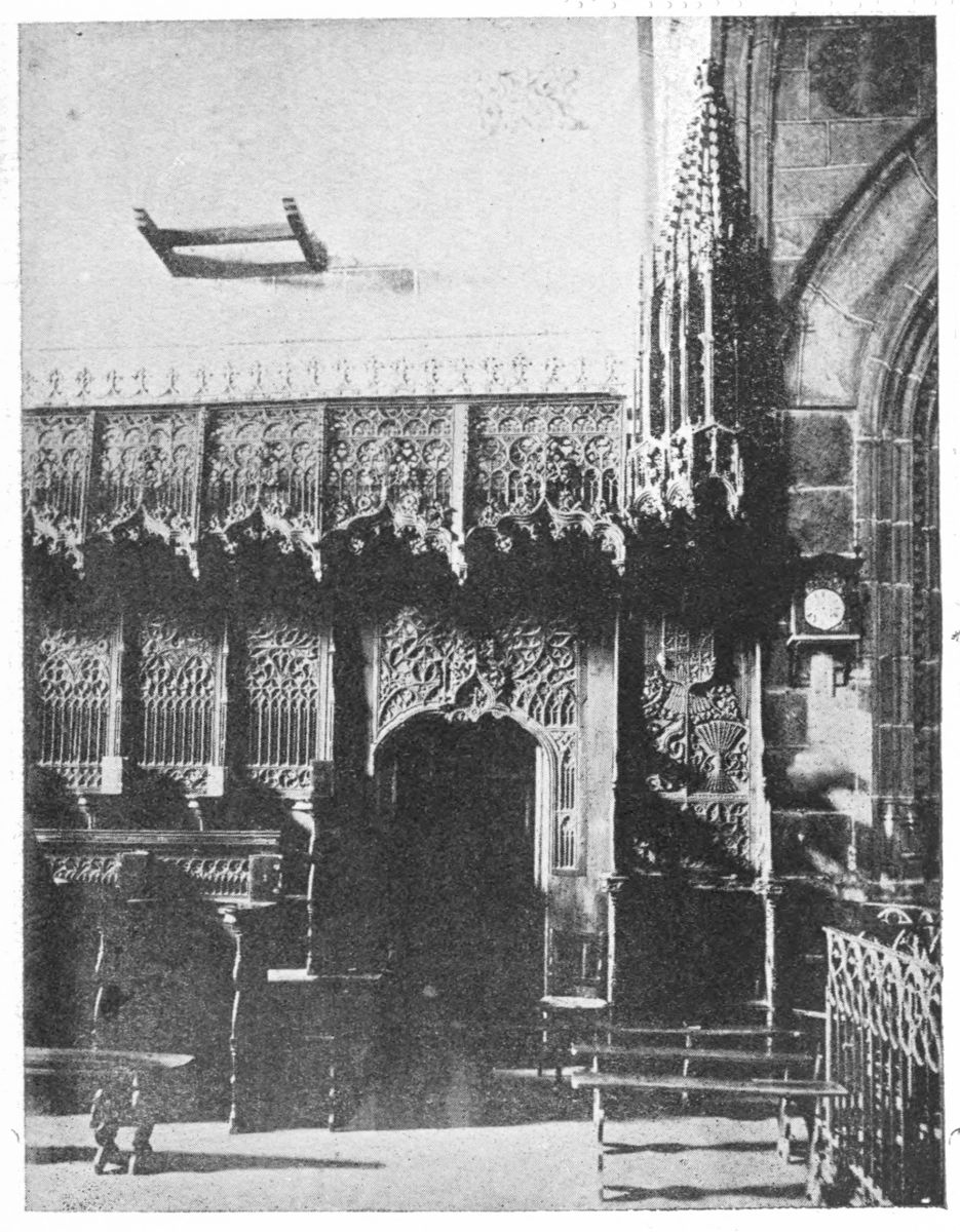 In the transept is a rudely sculptured figure of Christ, believed to date from the twelfth century. The shells sculptured on the capital of the pillar, against which it stands, refer to the pilgrims who frequented this famous shrine.