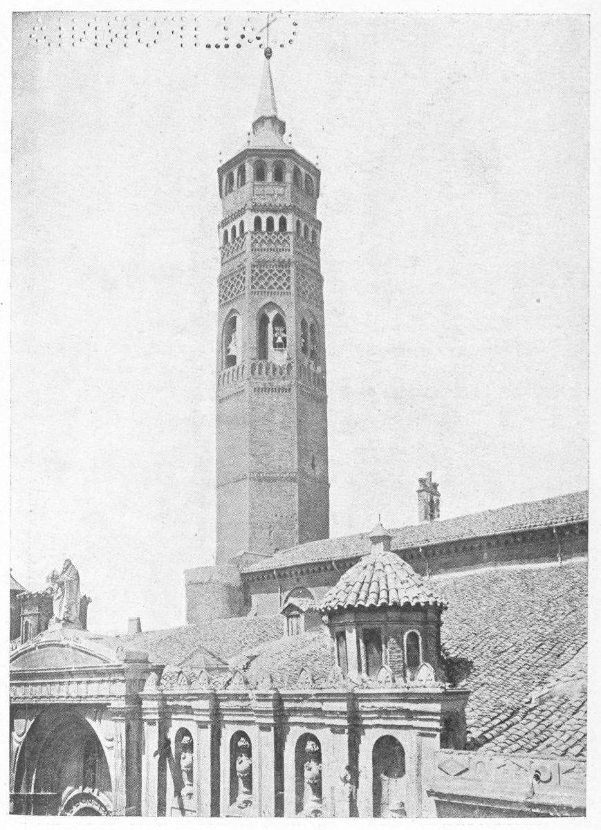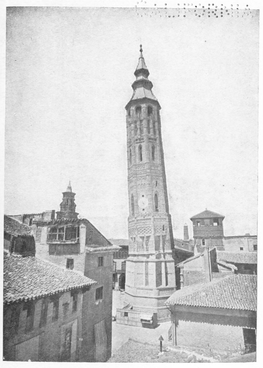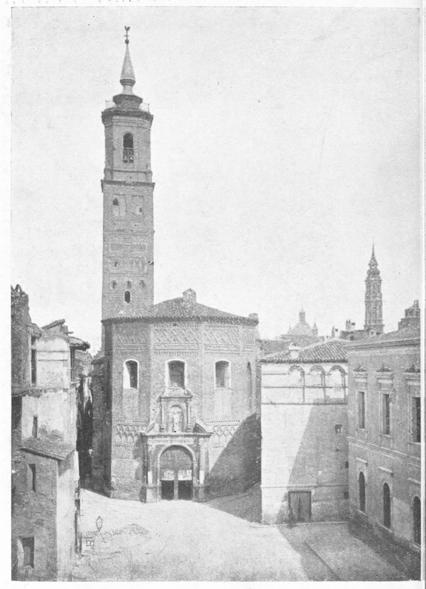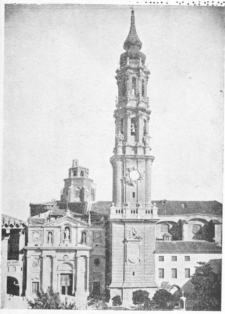 Probably only a few fragments of this old palace are older than the Cathedral of La Seo.{147} This is the name commonly given in Aragon to the cathedral church, and comes, of course, from the Latin sedes, like our own word ‘See.’ Zaragoza became the metropolitan city of Aragon in 1318, and the archiepiscopal dignity was reserved as far as possible to the illegitimate sons of the kings. The city has now two cathedrals, which are used for alternating periods of six months. The Seo is the older of these, and occupies the site of the Moorish mosque—some say, even of an earlier Christian temple dating from Roman times. The church was, at all events, entirely rebuilt between 1188 and 1432, several Moorish names being mentioned among the architects. It can hardly be said to have been completed till the year 1550. Here were crowned the Kings of Aragon, and here, as we have related, was slain the Inquisitor, Pedro de Arbues.