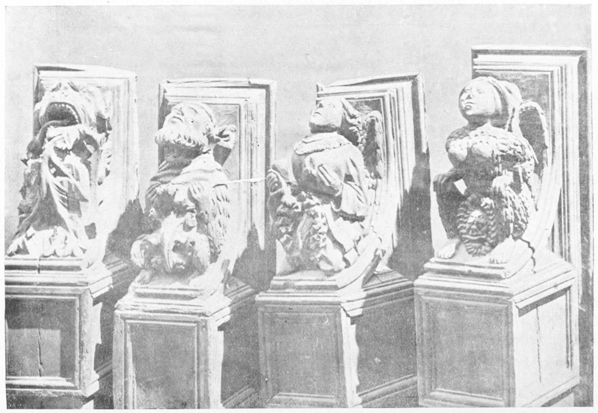 Within these walls have been collected treasures from the demolished, dismantled, and disused churches, convents, and palaces of the city, many of the objects now here having been removed from their original positions by the French and left behind them in the hurry of flight. Here we find the retablo executed between 1526 and 1532 for the church of San Benito by Alonso Berruguete. Street, who disliked all the{34} works of the Renaissance, denounced this altarpiece in unmeasured terms; but no impartial critic can deny the beauty of certain of the figures, notably those of Abraham and St. Sebastian. In the museum may also be seen the choir stalls from the same church, carved by the master in 1528—ten years before he designed the silleria of Toledo. The work displays marvellous imagination and great delicacy in the execution.