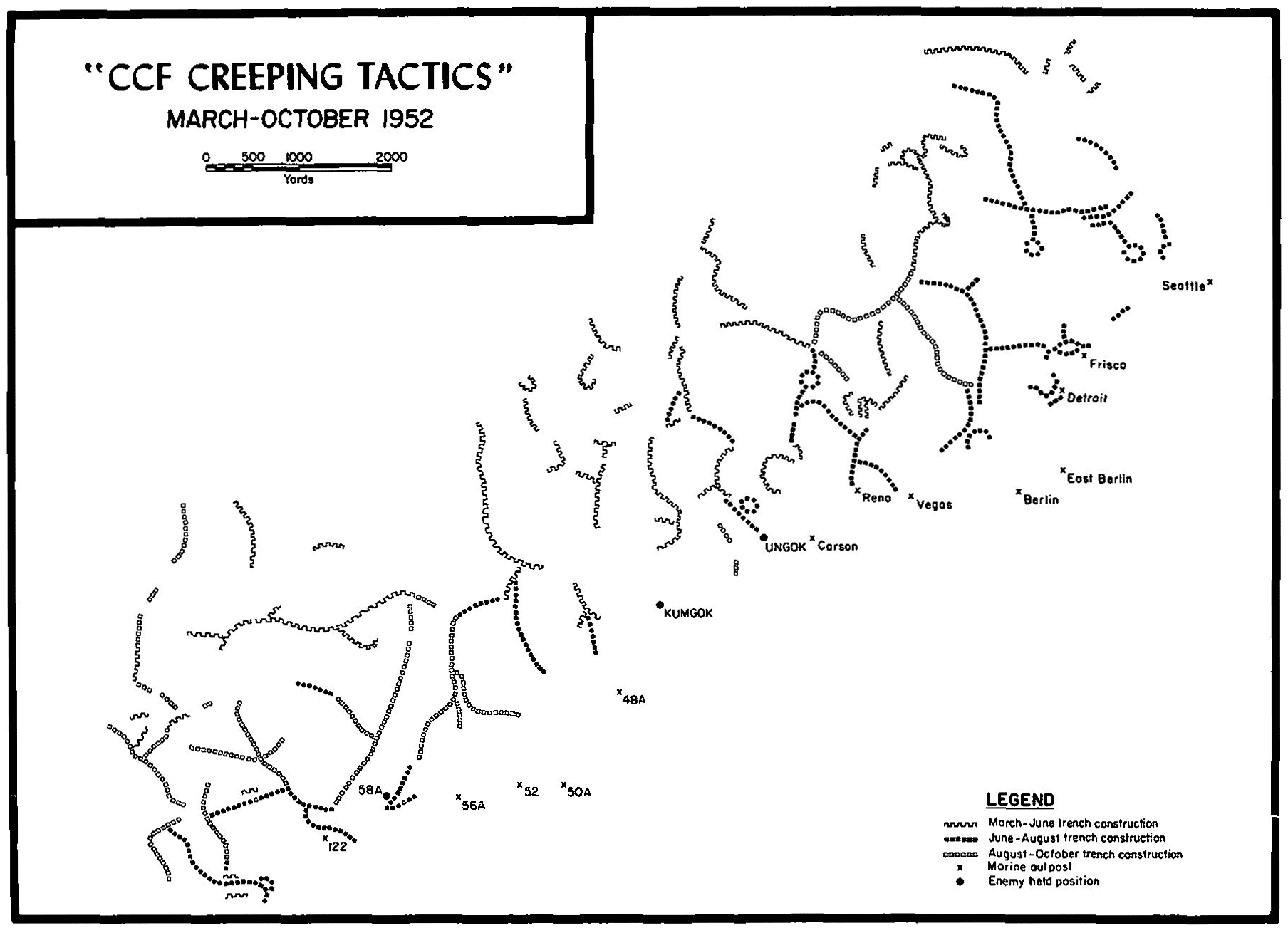 Mention the Korean War and almost immediately it evokes the memory of Marines at Pusan, Inchon, Chosin Reservoir, or the Punchbowl. Americans everywhere remember the Marine Corps’ combat readiness, courage, and military skills that were largely responsible for the success of these early operations in 1950–1951. Not as dramatic or well-known are the important accomplishments of the Marines during the latter part of the Korean War.