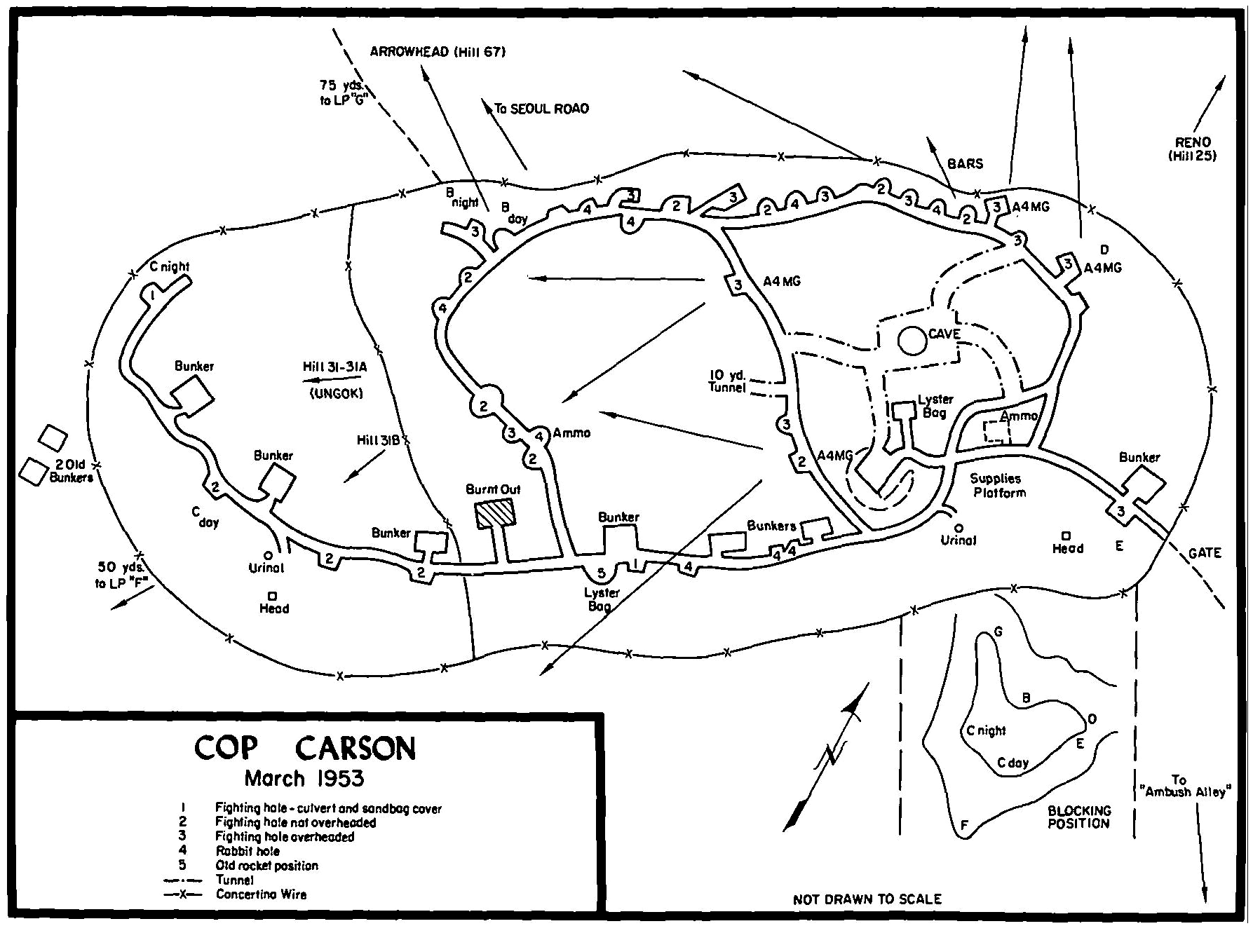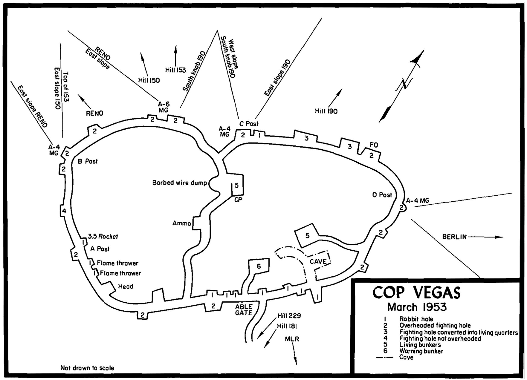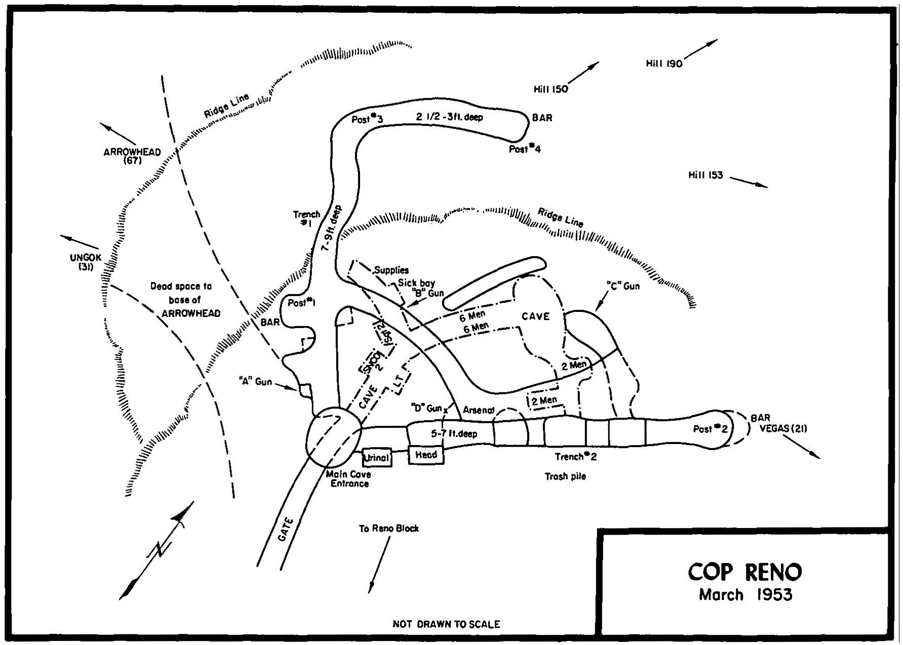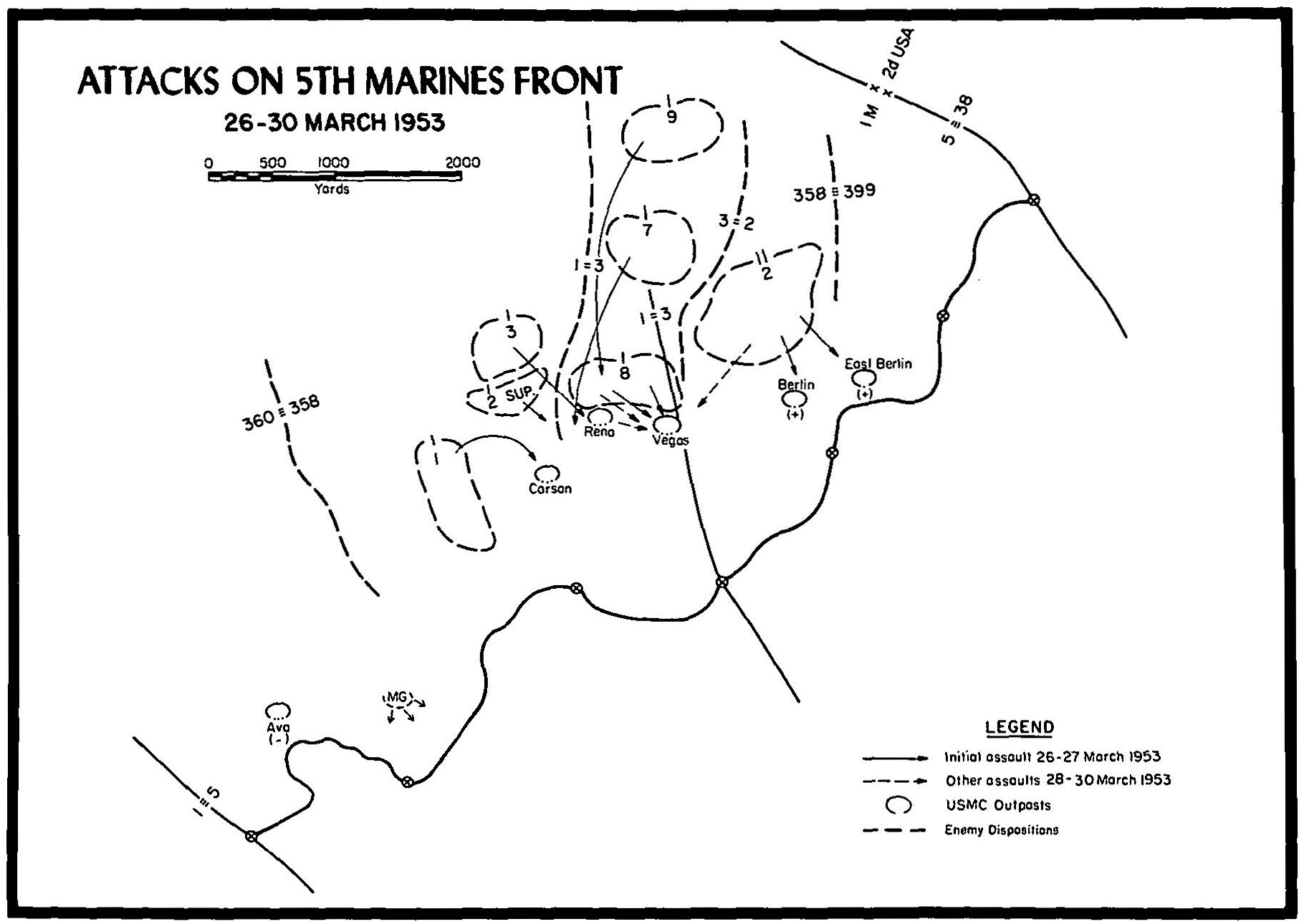 | The Nevada Cities—Supporting Arms—Defense Organization at the Outposts—Chinese Attack on 26 March—Reinforcements Dispatched—Massed Counterattack the Next Day—Push to the Summit—Other Communist Probes—Three CCF Attempts for the Outpost—Vegas Consolidation Begins—Aftermath | ||