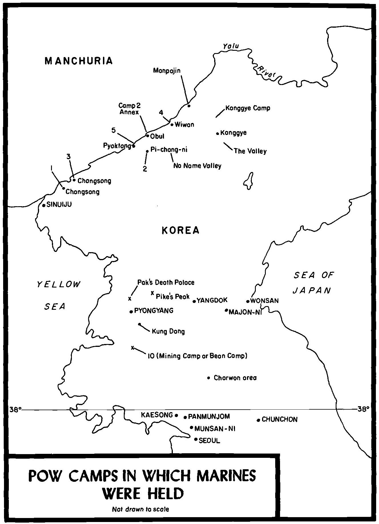 | Operation BIG SWITCH—Circumstances of Capture—The Communist POW Camps—CCF “Lenient Policy” and Indoctrination Attempts—The Germ Warfare Issue—Problems and Performance of Marine POWs—Marine Escape Attempts—Evaluation and Aftermath | ||