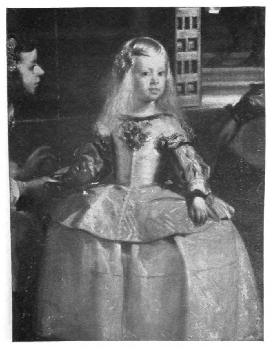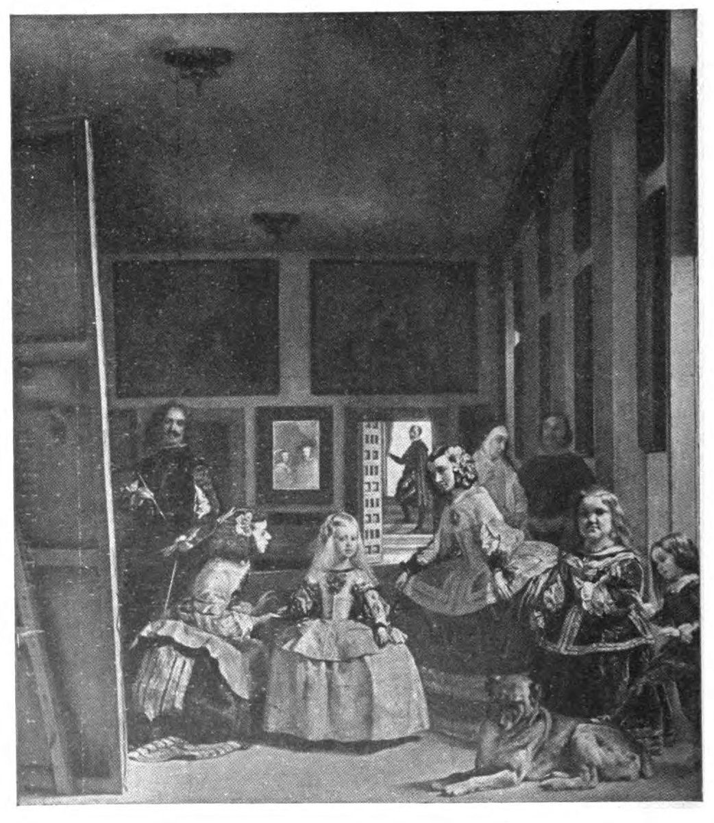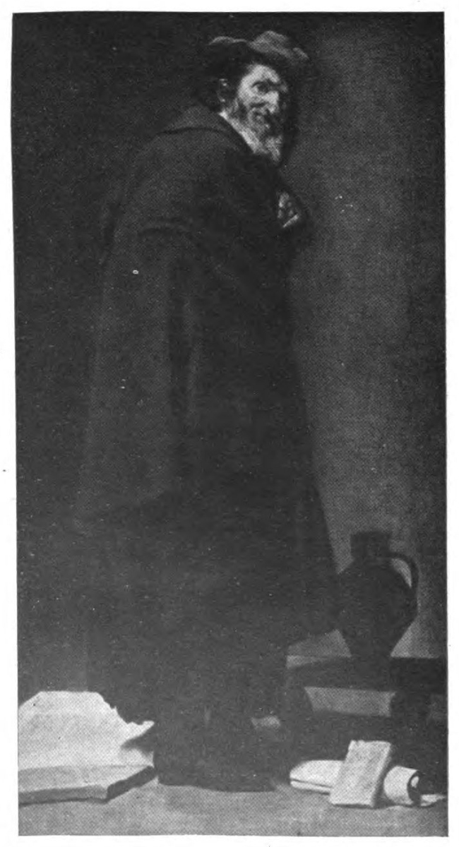 After having painted at Rome in 1650 the portrait of the Doria Pope, preceded by the bust of Juan Pareja now at Longford Castle, and the study for the portrait of the Pope which is preserved in St. Petersburg at the Hermitage, Velázquez became one of the highest functionaries of the Spanish Court. Up to his death in the month of August 1660 he superintended the decoration of the Royal Palace. His official duties, which were quite foreign to the exercise of his art contributed greatly to limit the output of the painter. However he found means to take from his numerous and exacting occupations the time to create works such as the last portraits of the Kings and the Princes which we admire so much at Madrid; the second series{27} of dwarfs, richer still and more marvellous than those that he had painted in his maturity and among which we must place the two characteristic figures of Aesop and Menippus which have nothing of the Greek and are in the last epoch of the painter’s life, what the painting of the Drunkards had been in the earlier; the two religious paintings of the Crowning of the Virgin and the Holy Hermits; the six mythological canvases, three of which perished in the burning of the Alcazar in 1734, but some of which happily remain in our national Museum, the Gods Mars and Mercury with Argus, and, in the National Gallery in London, the Venus with the Looking-glass, the attribution of which has been wrongly doubted; and finally the fine canvases of the Spinners and the Meninas the supreme monuments of a whole school, models of synthetic art, marvellous for the simplicity of their technique, the delicacy of their harmonies, and the study of values, paintings which, in spite of their modest appearance and lack of elaboration, are works of magic and sublime creations in which the painter betrays neither effort, weakness or fatigue.