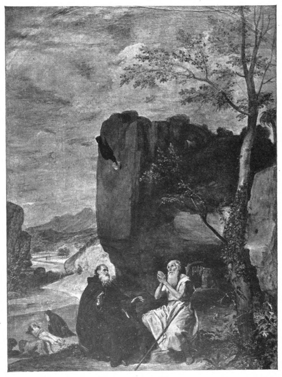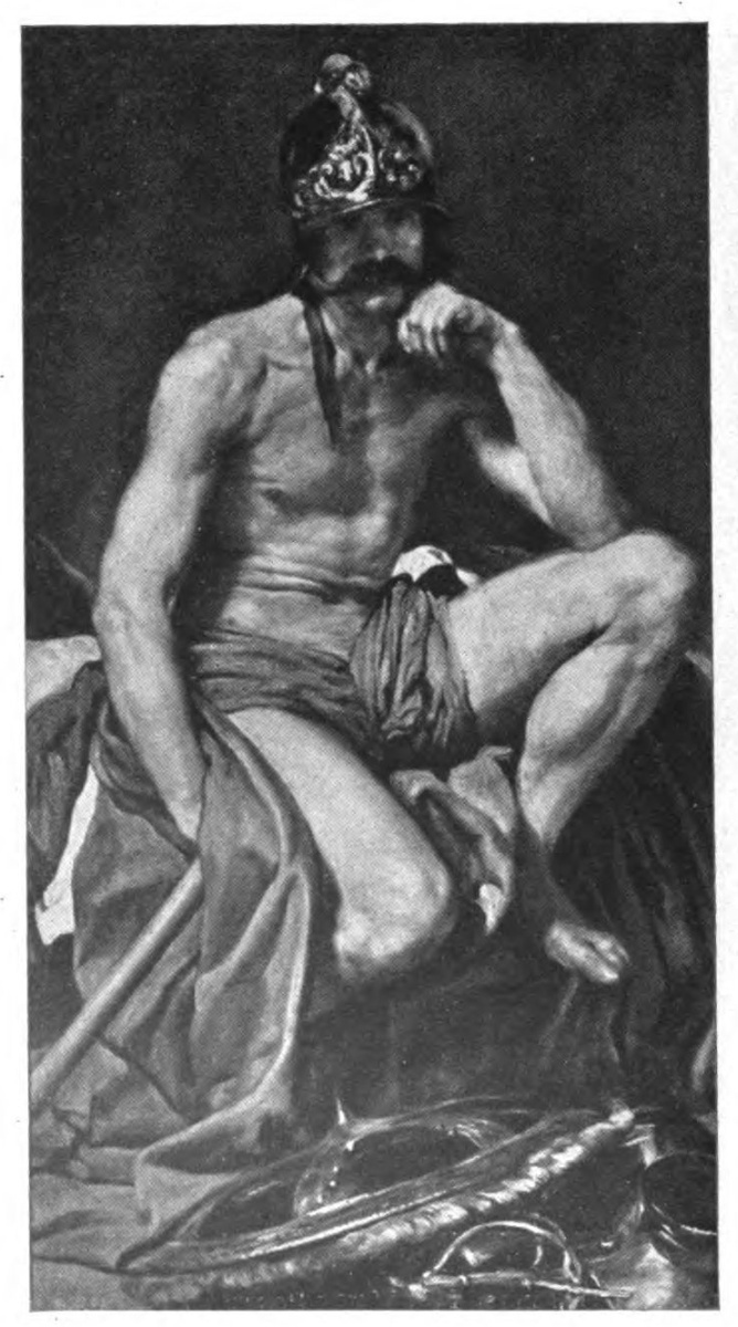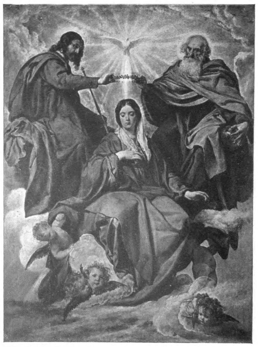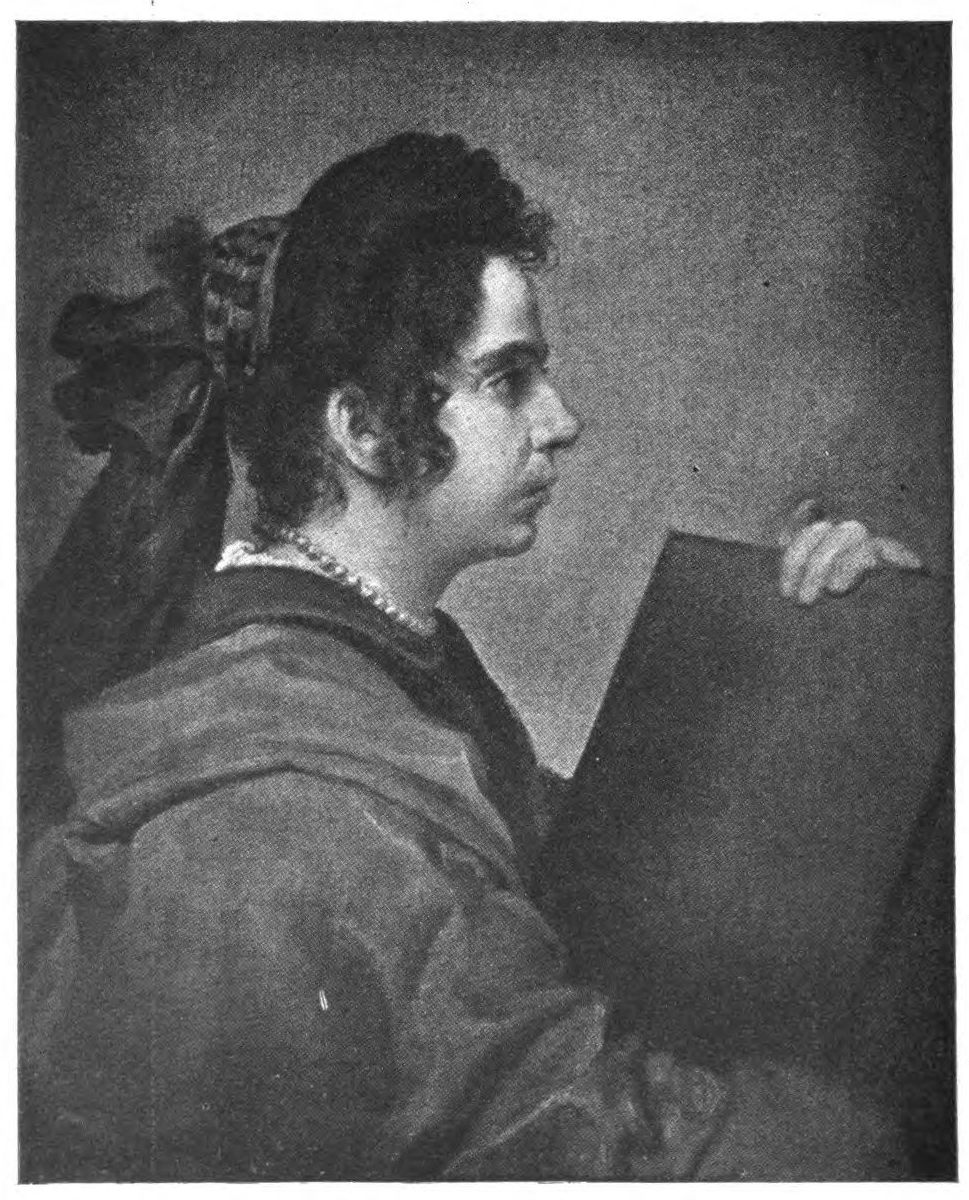 After having painted at Rome in 1650 the portrait of the Doria Pope, preceded by the bust of Juan Pareja now at Longford Castle, and the study for the portrait of the Pope which is preserved in St. Petersburg at the Hermitage, Velázquez became one of the highest functionaries of the Spanish Court. Up to his death in the month of August 1660 he superintended the decoration of the Royal Palace. His official duties, which were quite foreign to the exercise of his art contributed greatly to limit the output of the painter. However he found means to take from his numerous and exacting occupations the time to create works such as the last portraits of the Kings and the Princes which we admire so much at Madrid; the second series{27} of dwarfs, richer still and more marvellous than those that he had painted in his maturity and among which we must place the two characteristic figures of Aesop and Menippus which have nothing of the Greek and are in the last epoch of the painter’s life, what the painting of the Drunkards had been in the earlier; the two religious paintings of the Crowning of the Virgin and the Holy Hermits; the six mythological canvases, three of which perished in the burning of the Alcazar in 1734, but some of which happily remain in our national Museum, the Gods Mars and Mercury with Argus, and, in the National Gallery in London, the Venus with the Looking-glass, the attribution of which has been wrongly doubted; and finally the fine canvases of the Spinners and the Meninas the supreme monuments of a whole school, models of synthetic art, marvellous for the simplicity of their technique, the delicacy of their harmonies, and the study of values, paintings which, in spite of their modest appearance and lack of elaboration, are works of magic and sublime creations in which the painter betrays neither effort, weakness or fatigue.