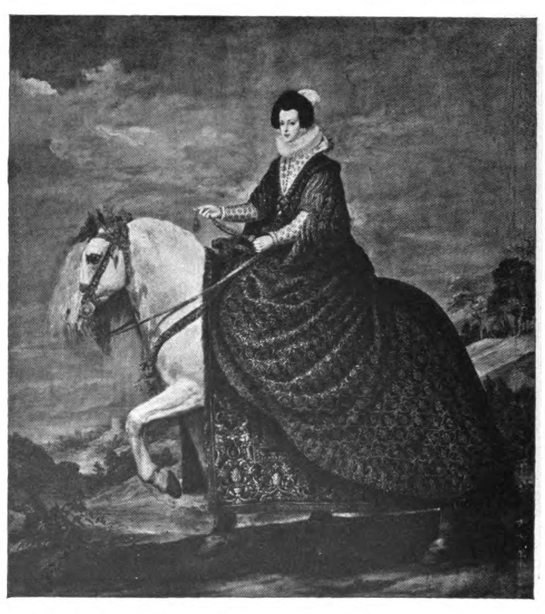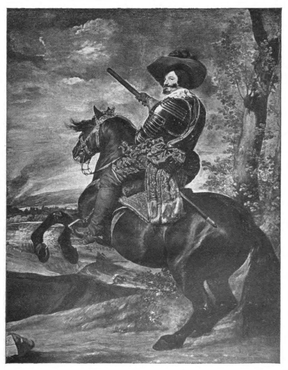 The painting of The Lances unequalled for nobility, where the painter’s genius reproduces all the chivalrous spirit of the race; the equestrian portraits of the King, Queen and princes; the other canvases where the same personages are seen dressed for the chase, and which have as background the mountainous country of the Pardo with its ancient oaks planted in a soil as picturesque as it is poor—these landscapes, the horizon of which is bounded by the range of the Sierra de Guadarrama, and by the snowy summits of Castile glittering in the sun; and other portraits also like that of the Count-Duke Olivares; that of{26} the King in military uniform painted at Fraga in 1644 and discovered in 1912; those of the court jesters; that of a Spanish woman, typical of its class, which is one of the treasures of the Wallace collection; Christ on the Cross; the scenes of the chase; all works which give an idea of the power which the painter’s personality acquired. During these eighteen years of maturity developed what the critics call the second manner of Velázquez, larger than that of his youth, even more finely coloured and enriched with those harmonies in grey and silver with which nothing else can compare.