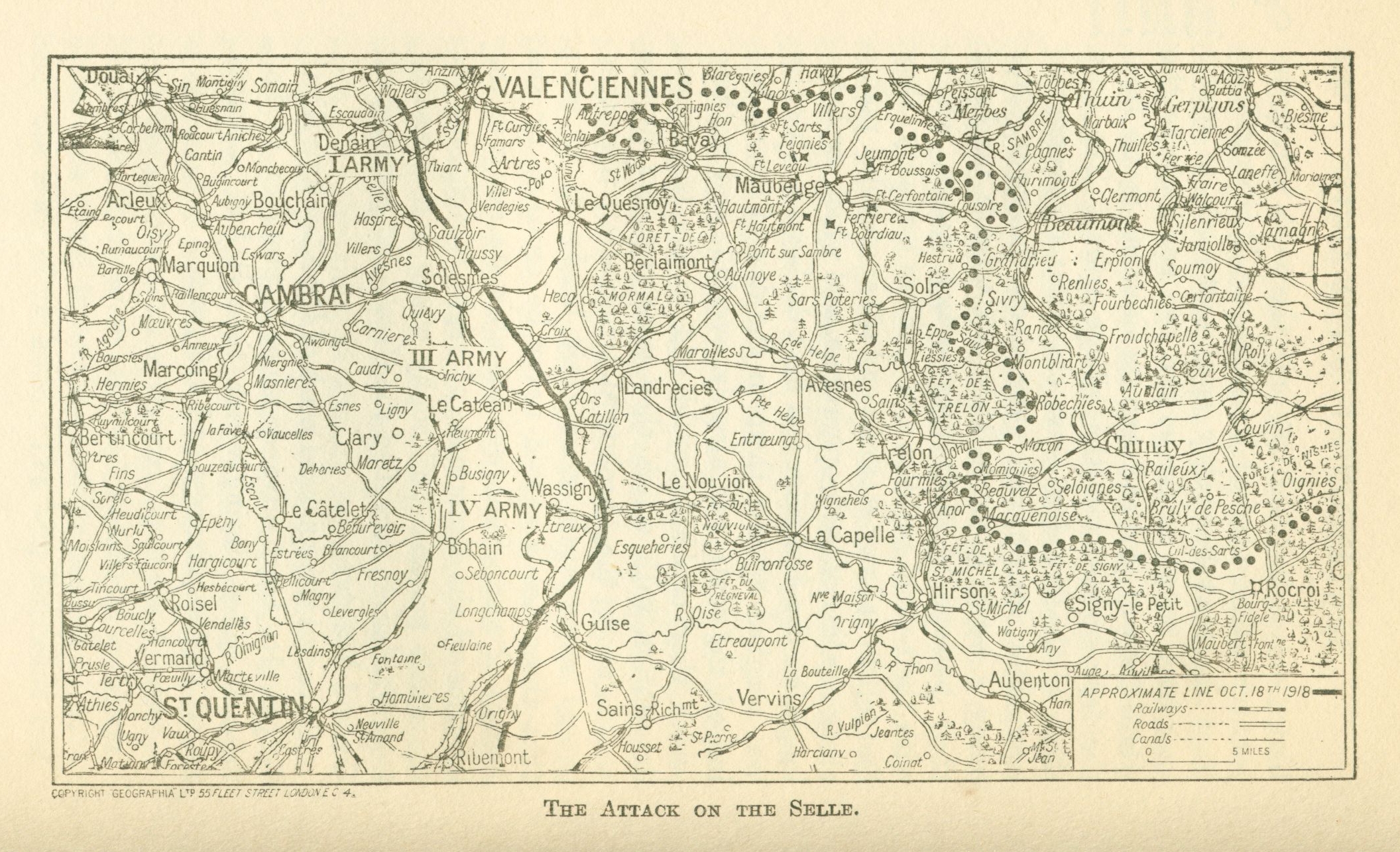 The battle of the Selle River—Reversion to open warfare—The valour of Lancashire—Haig's incessant blows—Weakening of the German morale—The battle of Mormal Forest—New Zealanders and the mediaeval fortress—Capture of the great forest—The Sambre bridged—A grand Division—Advance of Fergusson's Seventeenth Corps—The last phase