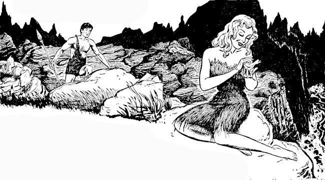 The girl, in her single brief garment of skins, dropped down beside him. She was tanned and strong-looking now, and a new radiance had replaced the old sullen look on her face.