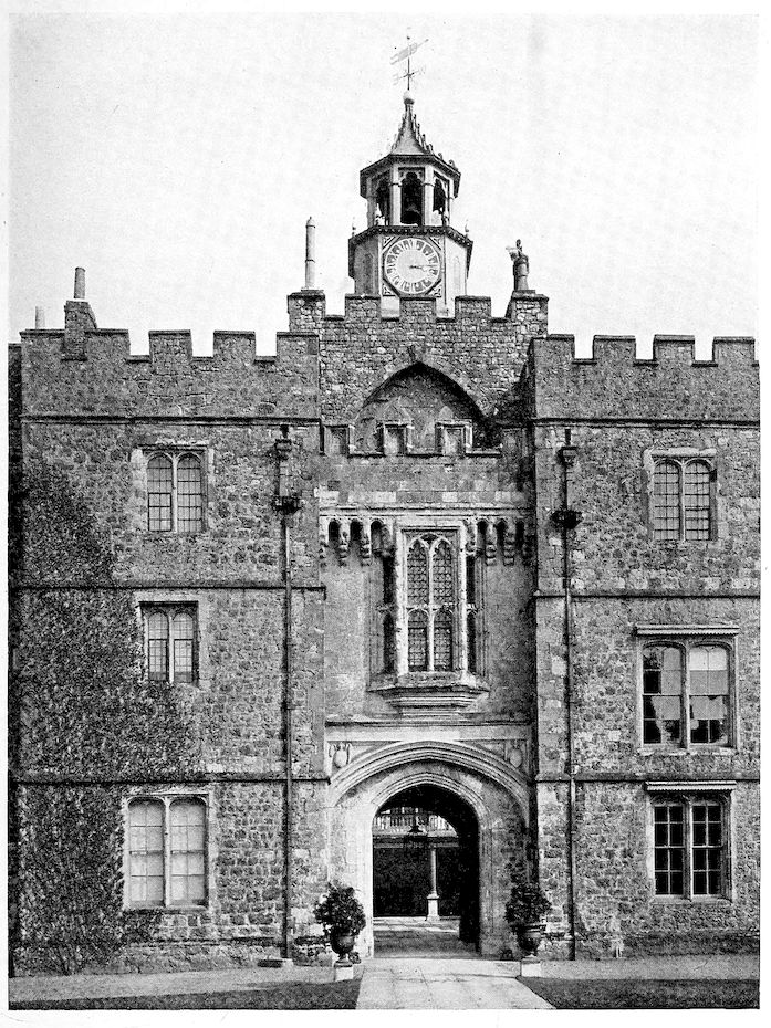 There are a few more items mentioned in the Lambeth papers, 1468–9: “Repairs at Knole. Repairs at one house set aside for the slaughter of sheep and other [animals?] for the use of the Lord’s great house at Sevenoaks, 113s. 2d.” This, I think, is certainly the old slaughter-house which forms one side of the Queen’s Court. It is obviously a very old building. But there is one point in this account which is of interest, namely, that Knole should at this date have been referred to as the “great house.” This would seem to prove that the greater mass of the building was already in existence, since by the latter half of the fifteenth century there were already many houses and palaces in England whose bulk would argue that the current standard of greatness might be high and the adjective not too readily applied. The Primate owned, moreover, up to the time of the Reformation no less than twelve palaces and houses of residence in the diocese of Canterbury alone, namely, Bekesburn, Ford, Maidstone, Charing, Saltwood, Aldington, Wingham, Wrotham, Tenterden, Knole, Otford, and Canterbury. It seems, therefore, unlikely that Knole should be singled out as a “great house” unless there were good justification for the expression.