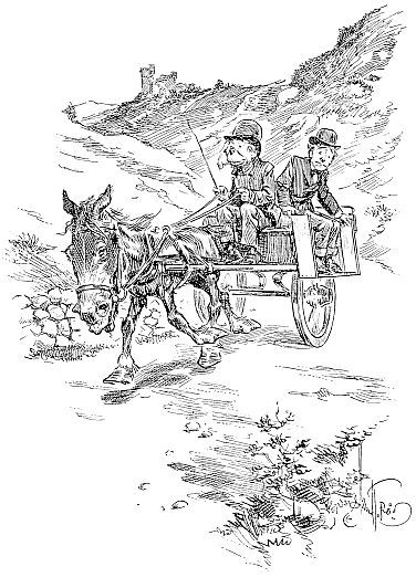 There are some things that are peculiarly Irish. The jaunting-car is one of them. It is the favorite vehicle for driving. It looks like a two-wheel cart, driver’s seat in the front end and passengers’ seats back to back, facing outward. My fellow-traveler, Mr. McGregor, says the Irish brogue has perverted into jaunting-car the real name, which is jolting-car. The driver is always a good fellow and he keeps the horse on the gallop much of the time. You have to learn to keep your seat on a jaunting-car as you do on a bicycle. You also have to learn to weigh the statements of your driver as to distances and legends as you do the promises of a candidate for office. We suggested to one that a jaunting-car driver had to lie. “We never lie, sir,” said the Irishman. “But we stretch it a little.”