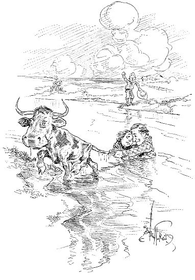 In a little old English inn on the bank of the river Thames we ate our lunch and watched the endless procession of boats that passes up and down the stream. The ocean reaches up the river as far as London, so that it is really an inlet, with a tide that rises and falls, and a deep channel for ships. Ten miles above London the Thames is about the size of the Little Arkansas, and all the way past Windsor, Henley and Oxford, historic for the boat-races, it is very little wider than Cow creek. By a system of dams and locks the Thames above London is really only a canal. There is a path alongside, and we saw several young men taking their[264] sisters, or somebody’s sisters, for a boat-ride, the man walking the bank, pulling the boat with a rope, and the lady sitting in the boat. In some countries I have been in this summer the woman would have been pulling on the rope and the man would have been reared back in the seat, comfortably smoking a long cigar. As a river the Thames above London is not much, but as a pretty winding stream, carrying little steamboats and row-boats, filled with gaily dressed people, it is a success.