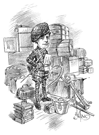 As soon as I disclosed my European intentions, I began to get advice from friends and old travelers. This is a trying experience. Everybody has ideas as to what should be done, and no two will agree. One of the first questions to be settled is that of clothing. The importance of this is impressed upon the prospective tourist. In the first place I am told to take no baggage except the very simplest that can be carried in the hand. In the second place I am advised that when traveling in Europe, even more than in this country, one should be prepared for all kinds of climate and be ready with the proper clothes to meet every emergency. Every bit of information is absolutely as true as common law or the gospel, for the informant has either made the trip, or his wife’s cousin has, or he knows a man who knows another man who did,—and you are told what happened with all the harrowing details. Clothes do not make the man or the woman, but they help out a lot. So that our friends will realize[13] the difficulties we may meet. I will admit that we are going to the “simple” extreme, taking only light baggage, very little more than a clean collar and a pleasant smile. If royalty wants to call upon us, royalty will not find us prepared with the clothes required by the books of etiquette, unless I can hire a dress suit or borrow one from the head waiter.