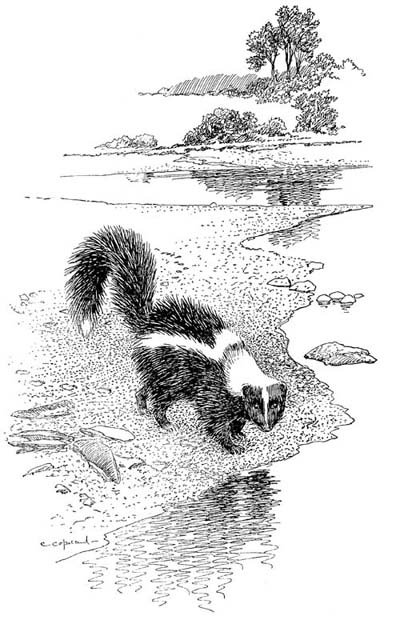 | Of a clear midsummer evening you may hear the muskrat grubbing roots there ... and hear his snort and splash when he dives at sudden sight of you | 142 |