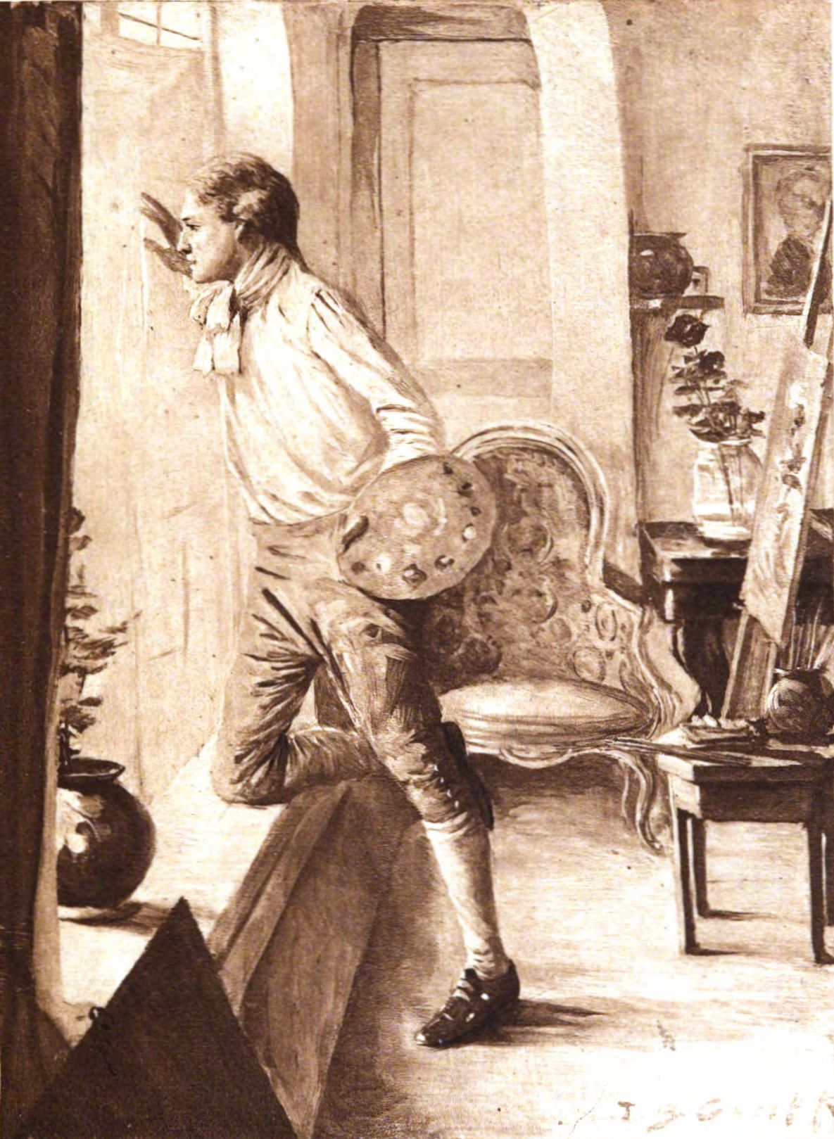 The time was the month of April, 1785, and the place Paris, where the spring that year was a genuine spring. The garden was in holiday attire, the greensward was studded with marguerites, the birds were singing, and the lilacs grew so straight and so close to Julien's window, that their fragrant clusters actually entered his room and strewed the white tiled floor of his studio with their little violet crosses.