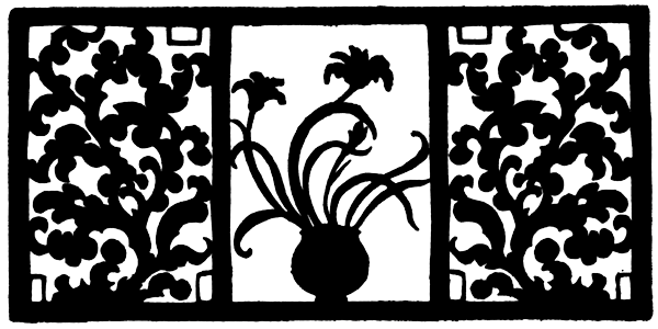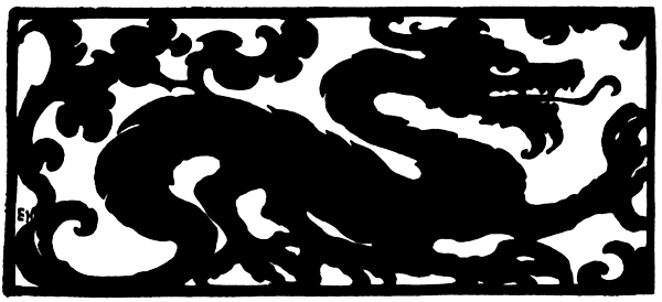Now in the reign of the Emperor Ming, a crazed and knavish fellow, known to the world as Wing Dow, invented a contrivance called by him “Look-through-the-wall,” but which we of today call a “Window.” His invention gave the Emperor Ming a severe cold, and Wing Dow came within a sword’s width of losing his ears—but more of that later. Here it is necessary to say only that Look-through-the-walls became popular, and many such were to be found in King Yang Lang’s palace. In the Princess Chin Uor’s room were many wing-dows (or windows), and—hard to believe—those wing-dows were unguarded either by charm or by apple wood beam, which is as good as a charm. Could the dragon pass by such a fine chance? Could he pass the wing-dow and not have a try? When he had come with purpose to do harm? It is easy to imagine the thing that happened. And yet not so easy as may seem.