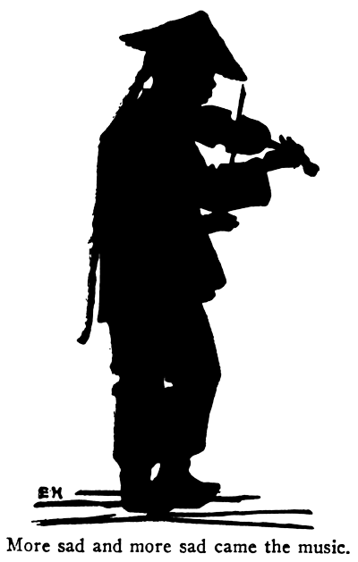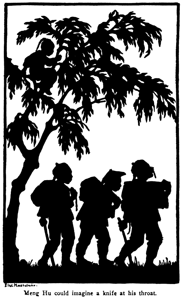 Away went Hai Low at his fastest, bearing a huge bamboo. The traveler beheld him, and promptly mounted a horse. Many robbers made misery in that region. The traveler had gained saddening experience of them. He imagined that Hai Low must be a robber—else why did the fellow wave a long bamboo? So the traveler put heels to his horse and galloped. But Hai Low was not to be left far behind. He followed swiftly, shouting words that mean stop, wait, hold on, tarry. And the more he shouted, the more determined grew the traveler never to stop until he had found protection in a camp of soldiers.