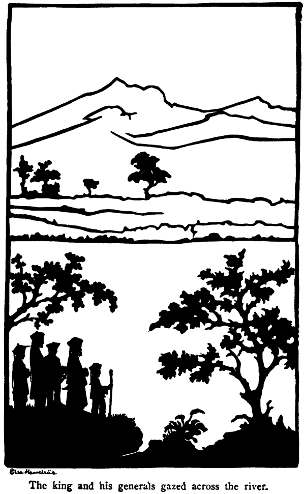 Still the King remained cheerful. His little daughter’s sadness passed unnoticed. His Majesty said: “Your pies, my daughter, are excellent food—let no one deny it—but even better are they to give warning of the dragon’s nearness. Your pies have provided me with a wonderful idea. Hereafter we need have no more fear of the loong. . . . Ho. General. Awaken your soldiers again. Let them march to the river.”