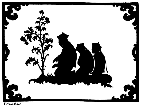 With soft voices the hunters wheedled. Hai Low said no. With harsh voices the hunters blustered and threatened. Hai Low said no. Money the hunters offered. Hai Low said no. His mind was fixed and nothing could move it. No once. No twice. No thrice. And again no. The hunters departed. The fox remained. And Hai Low believed he had done well for his first day of housekeeping. He imagined that his brother would praise him.